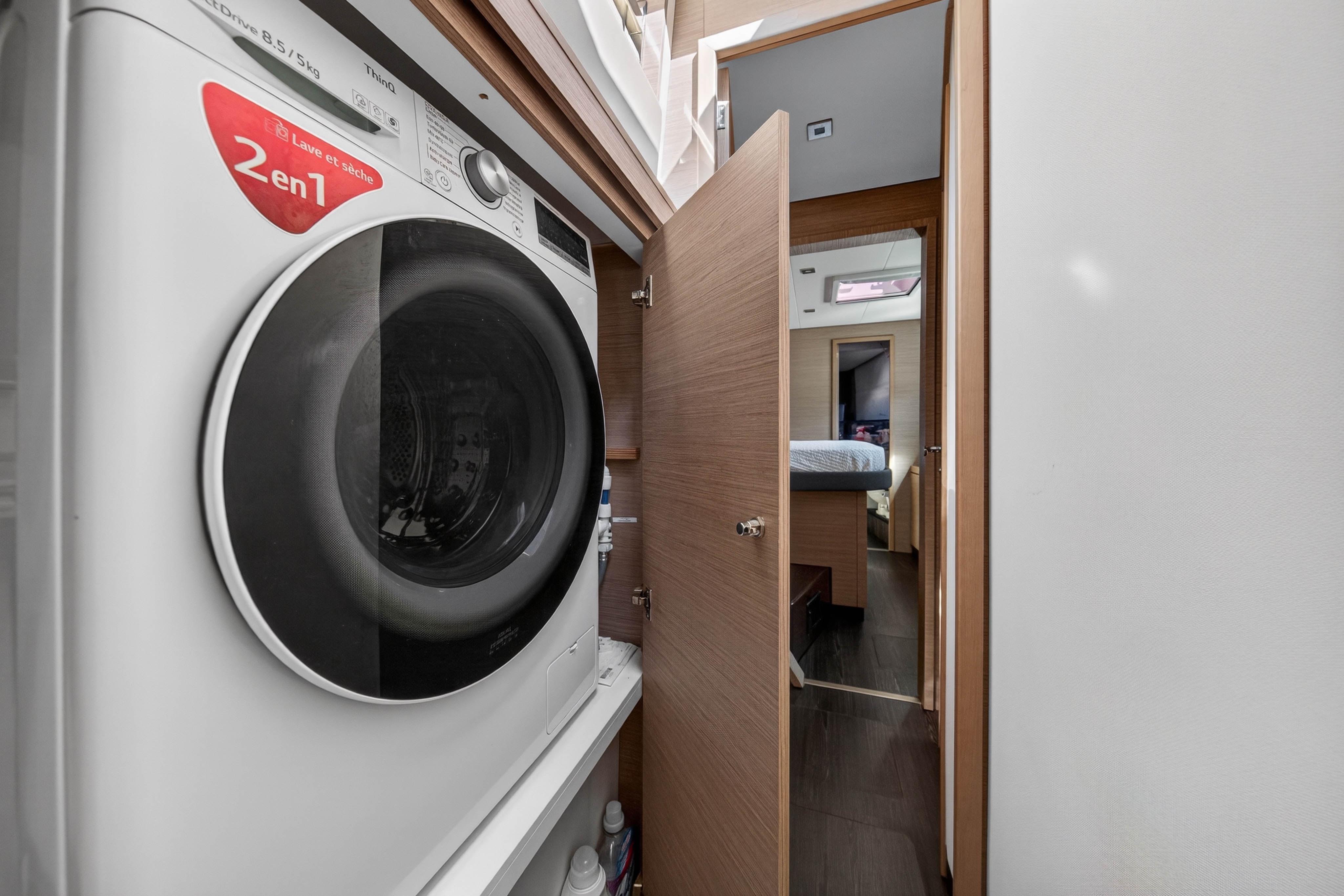 A premium 12V watermaker with soft start allows full operation without the generator. Combined with the solar/lithium suite, the vessel produces water quietly and efficiently anywhere in the world.
