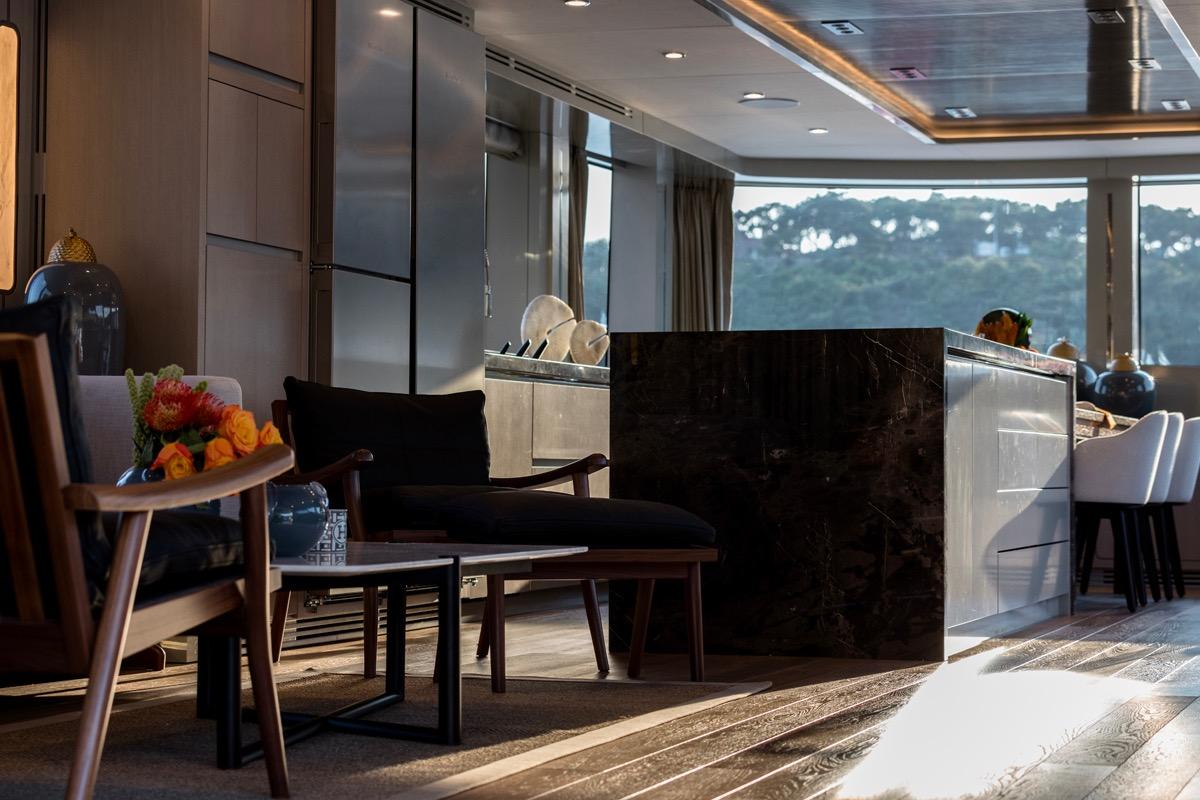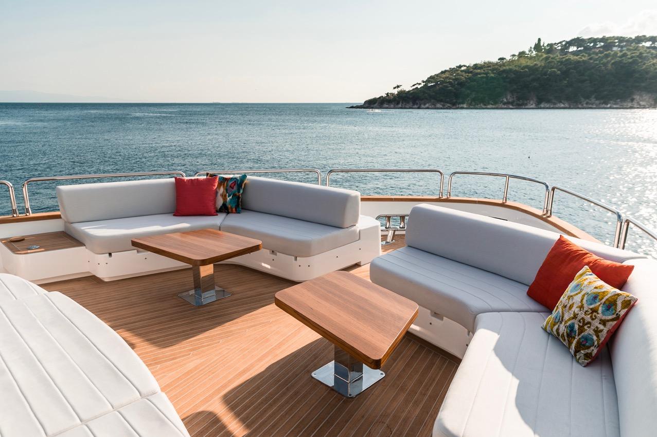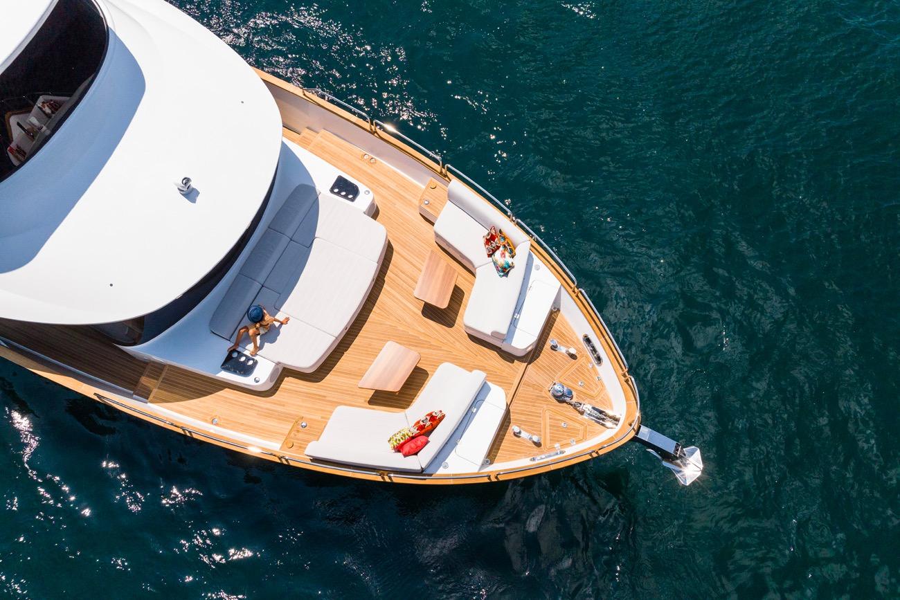 The Sirena 78 offers creative enhancements that signal an even more rapid evolution of design and innovation to improve the on-the-water experience. She effectively advances the idea of the cruising yacht by delivering a combination of interior comfort and a wide range of efficient performance. Her construction and finish meet at the intersection of advanced technology and craftsmanship,just as they did for her stablemates in the Sirena line, and yet the Sirena 78 takes next-generation thinking into every curve and corner of her design. It starts with the design, which boasts several options for the flybridge, a feature that has evolved as a hallmark element of the line. The flybridge is a key element on nearly all Sirenas, thanks to the space and views it makes available, as well as the overhang that provides delightful shade for the afterdeck.