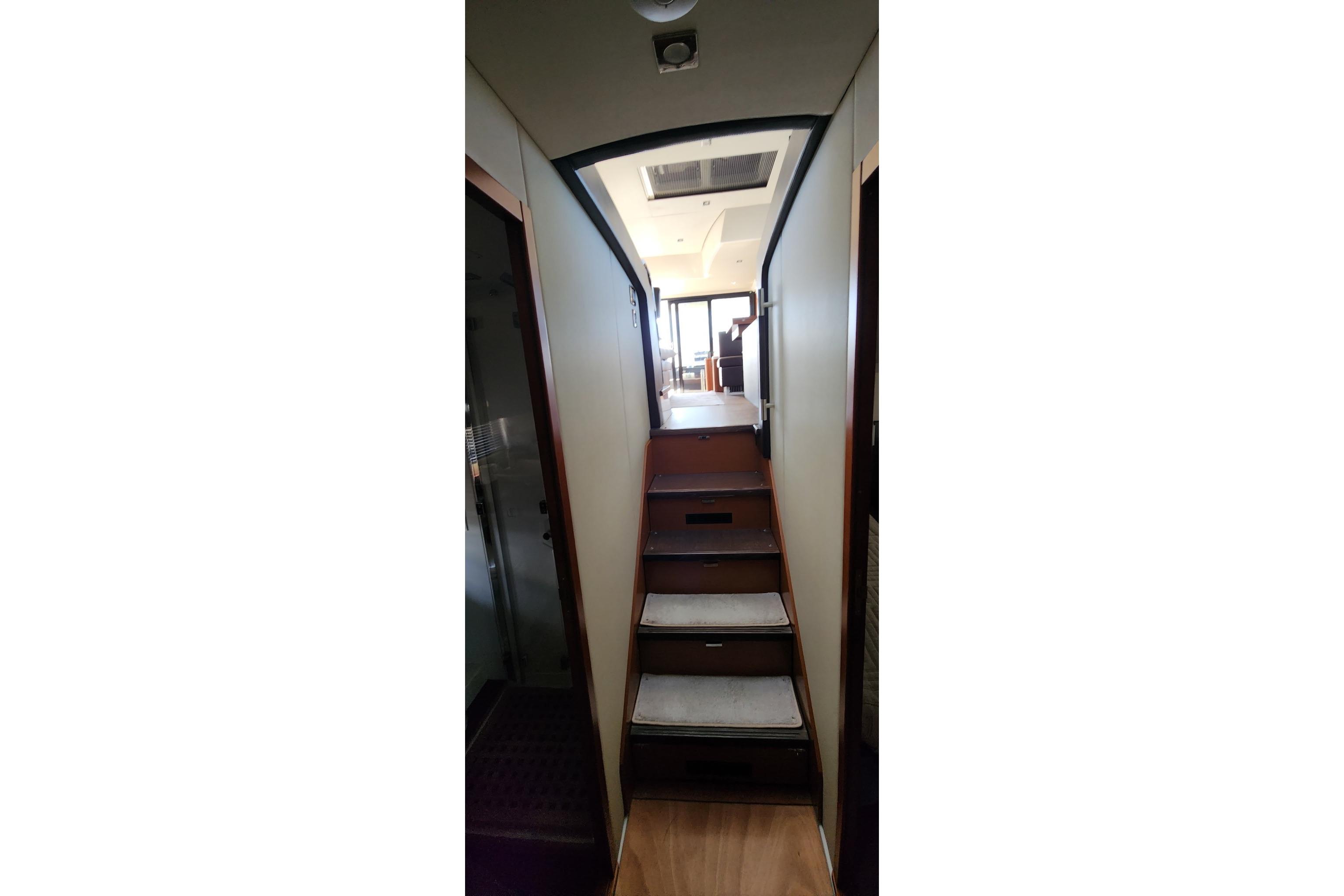 - Full-beam owner’s suite amidships with private entry, large windows, and en-suite head