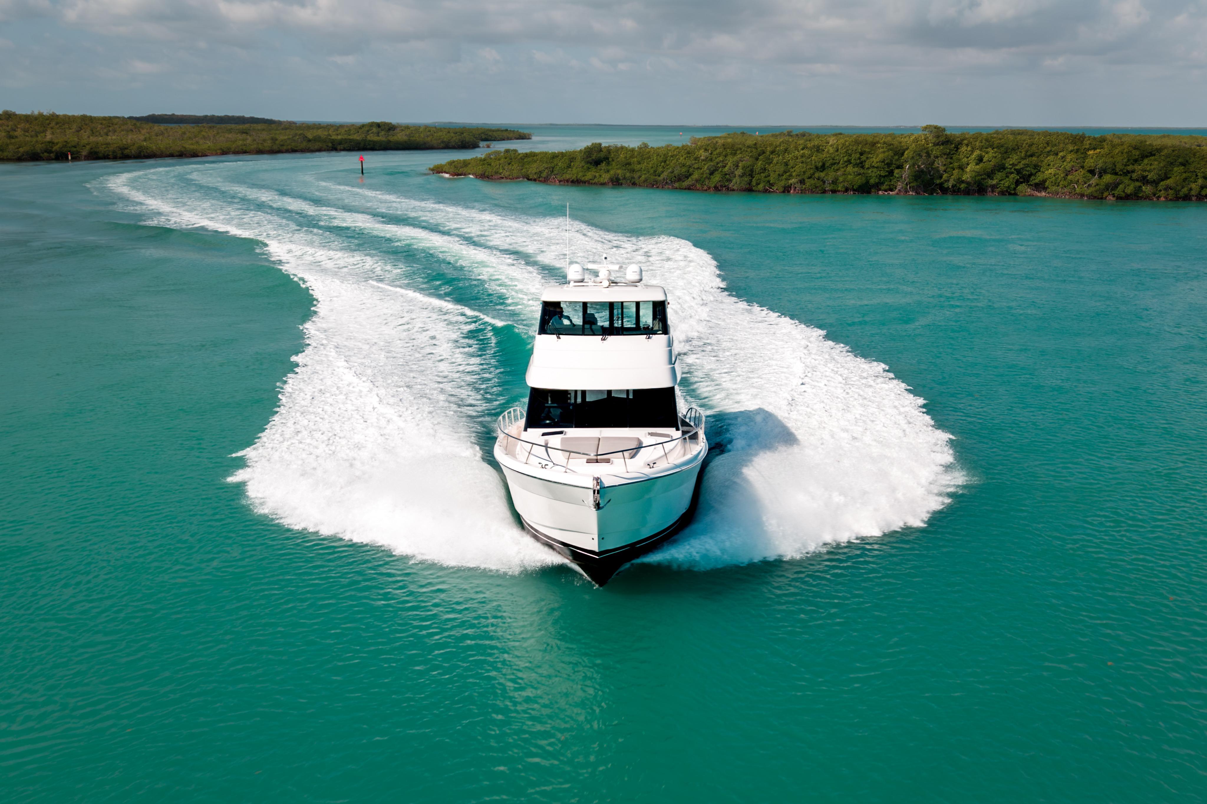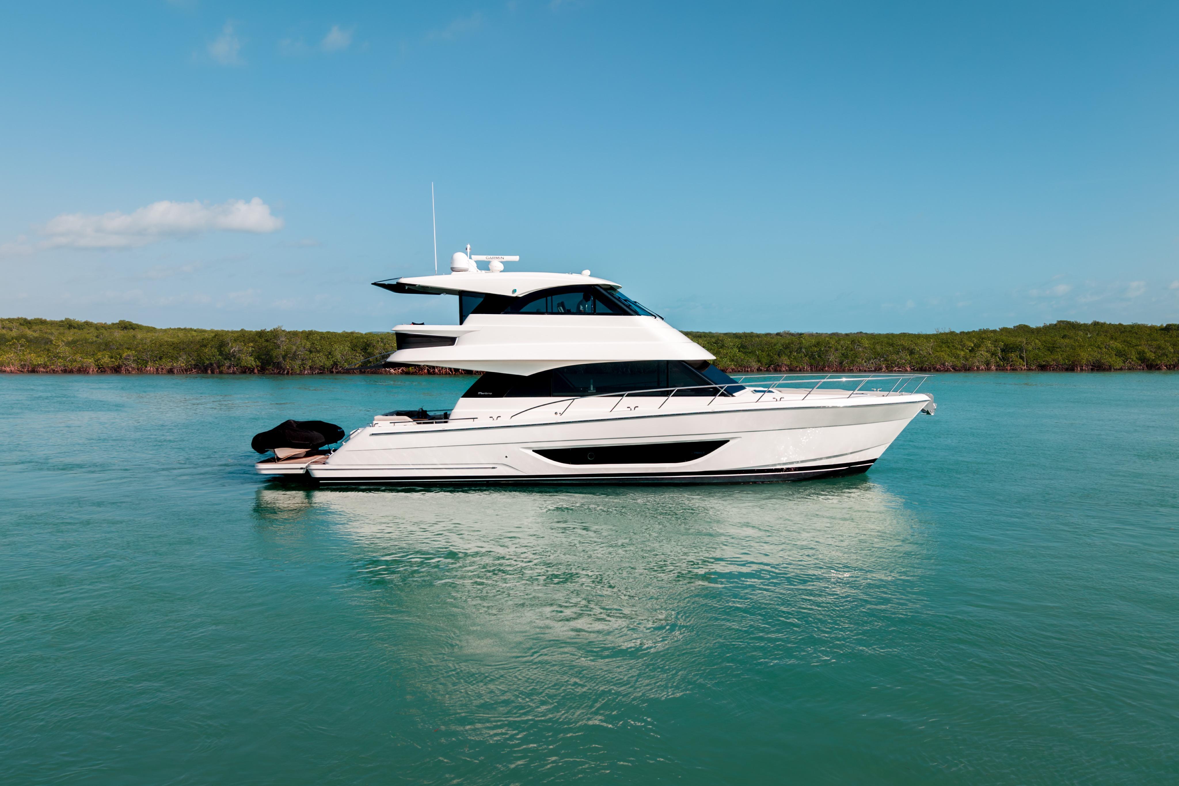 From her striking lines and enclosed flybridge profile to her expansive cockpit and seamless indoor-outdoor flow, this M55 is designed for extended cruising and effortless entertaining alike. The signature aft galley layout connects beautifully to the cockpit, while the fully enclosed flybridge offers commanding visibility and a second, climate-controlled living space.