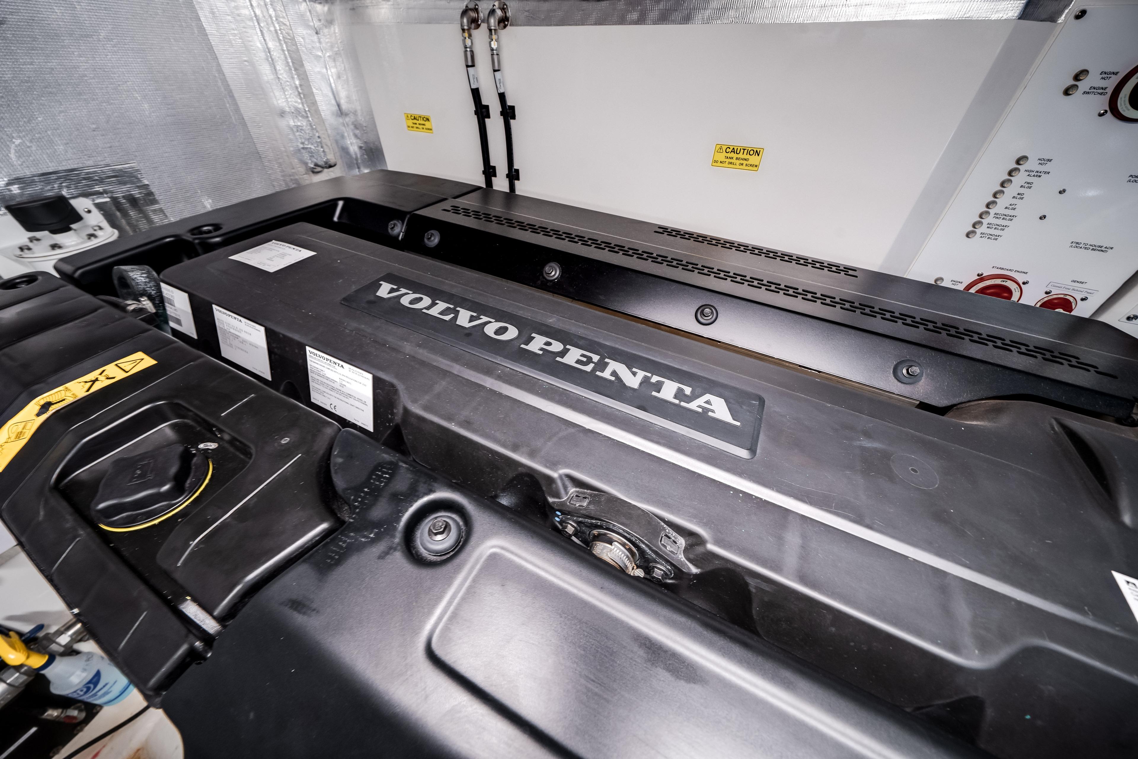 Power was very important to the owner which is why he selected the Volvo D13-1000 hp Volvo engines that are paired with ZF transmissions and shaft drive propulsion NO PODS HERE! with a Viking like ride, these 1000hp motors push her to a cruise speed of 30mph and a top speed of 35mph.