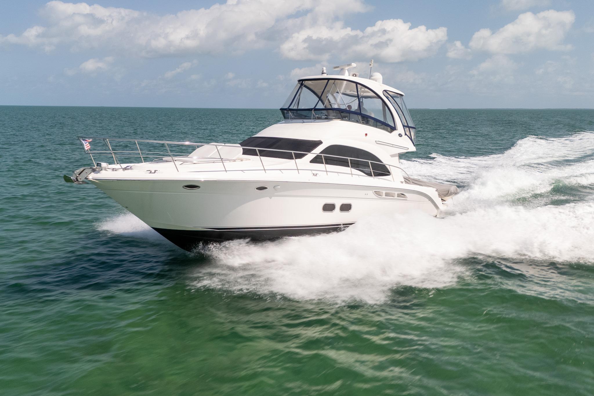 Introducing the stunning 2008 Sea Ray 520 Sedan Bridge, a remarkable flybridge yacht that embodies luxury and performance. With an overall length of 58 feet, this vessel is designed for both comfort and adventure on the water. The deep Vee hull, crafted from durable fiberglass, ensures a smooth and stable ride, making it perfect for cruising at a speed of 26 knots, with a maximum hull speed of 34 knots. Powered by twin Cummins QSM-11 inboard engines, each delivering an impressive 660 horsepower, this yacht offers exceptional power and reliability. The electric windlass adds convenience to your anchoring experience, while the spacious layout accommodates up to 15 guests, making it ideal for entertaining. With two well-appointed cabins and two heads, the Sea Ray 520 Sedan Bridge combines functionality with elegance, providing a perfect retreat for both relaxation and exploration on the open seas.