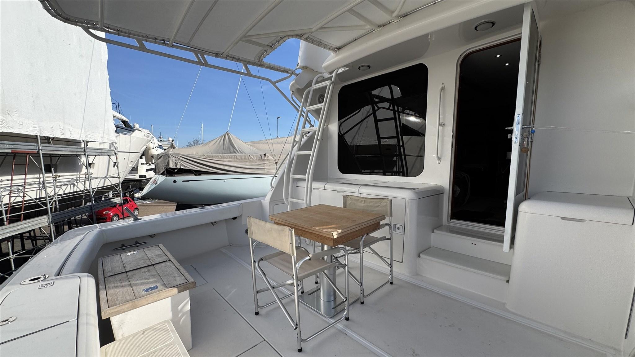 La disposición de salón, cocina y comedor es espaciosa y práctica. Hay espacio para relajarse o recibir invitados en confort con un conjunto completo de características y comodidades estándar. La segunda cabina es única, con literas dobles lado a lado en lugar de las más comunes literas sobre y por debajo. Inusual en un barco de este tamaño es la zona elevada de cócteles delante del comedor y la posibilidad de una pila lavadora y secadora en el pasillo. En el aspecto práctico, se prestó mucha atención a la organización y distribución de la sala de máquinas. El depósito de combustible se colocó a mitad de escuadra para minimizar el efecto de la carga de combustible en el trimado. También actúa como un eficaz aislante del ruido y el calor de la sala de máquinas para la zona delantera de la cabina. Una disposición cuidadosa de los componentes principales facilita mucho el mantenimiento.