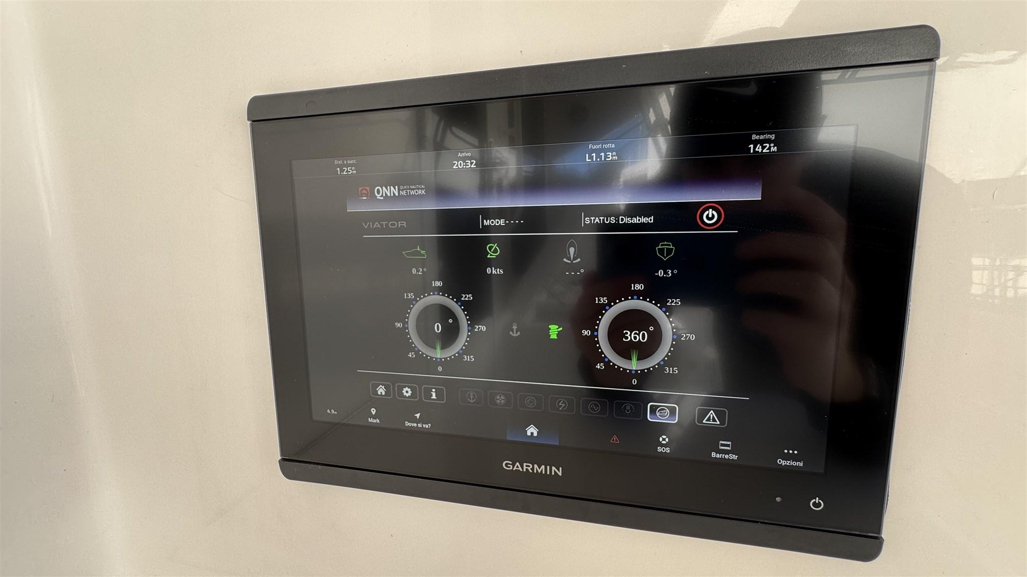 Fume/Gas Detector, Engine Alarm, Bilge Alarm, Anchor (30kg inox with 100 meters 10mm inox chain), Water pressure pump, Batteries (Engines and Services new 2022), Draining System, Battery charger (MASTERVOLT Charge Master Plus all in one 24/60-3 New 2022), Electric Flaps, Fire Extinguishing System, Washbasin in the cockpit, Courtesy Lights, Underwater lights (Quick - new 2025), Platform, 3 Electric Bilge Pump, Entry door, Shorepower connector, Water harbor connector system, Electric Windlass (LOFRANS 1500W), Waste Water Purifier System, Stabilizers (Quick fins - new 2025), Living Room Foldable Table, Horn, T-Top (in carbon + structure in aluminium - new 2025), Bow Winches.