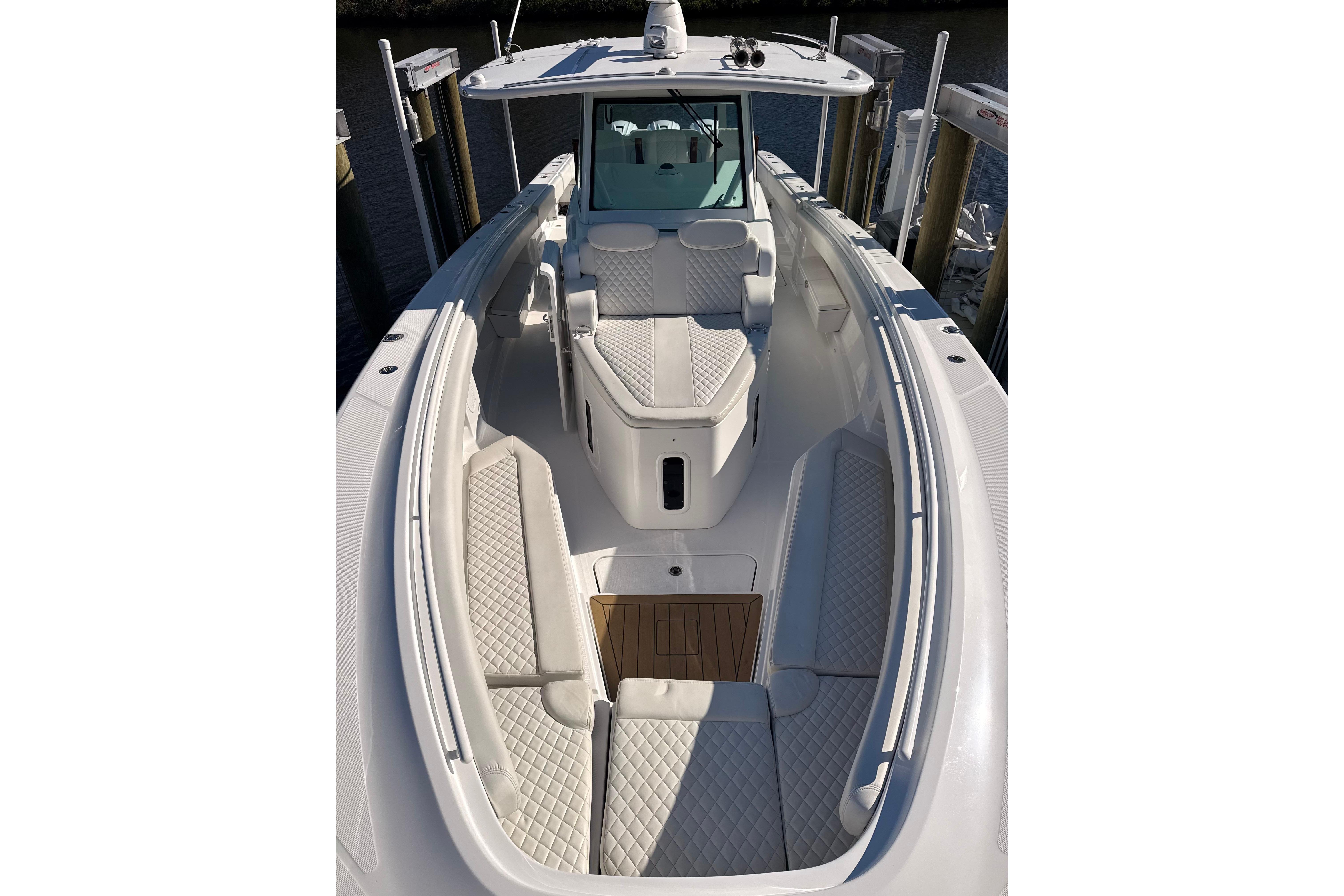 This 2022 HCB 42 Lujo is the perfect blend of Luxury, Performance, Comfort, and Serious Offshore Capability. Powered by Triple Yamaha 425 XTOs with just 380 hours. This 42 HCB has been Very Lightly Used. Lift & Covered Kept by its Original Owner.