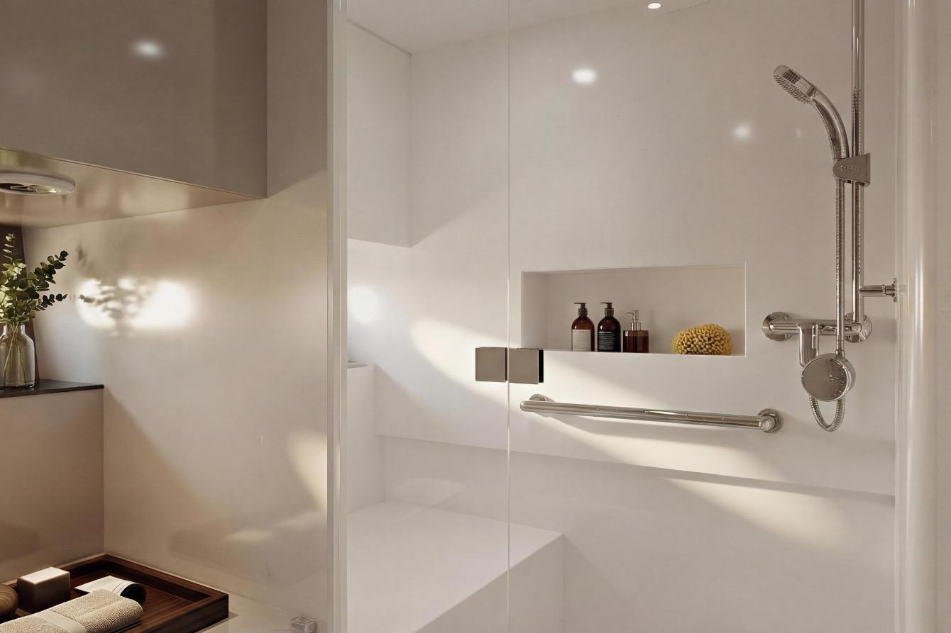 Inside, premium materials and contemporary European finishes create a clean, understated luxury aesthetic. Expansive glazing fills the salon with natural light while preserving climate control and privacy.