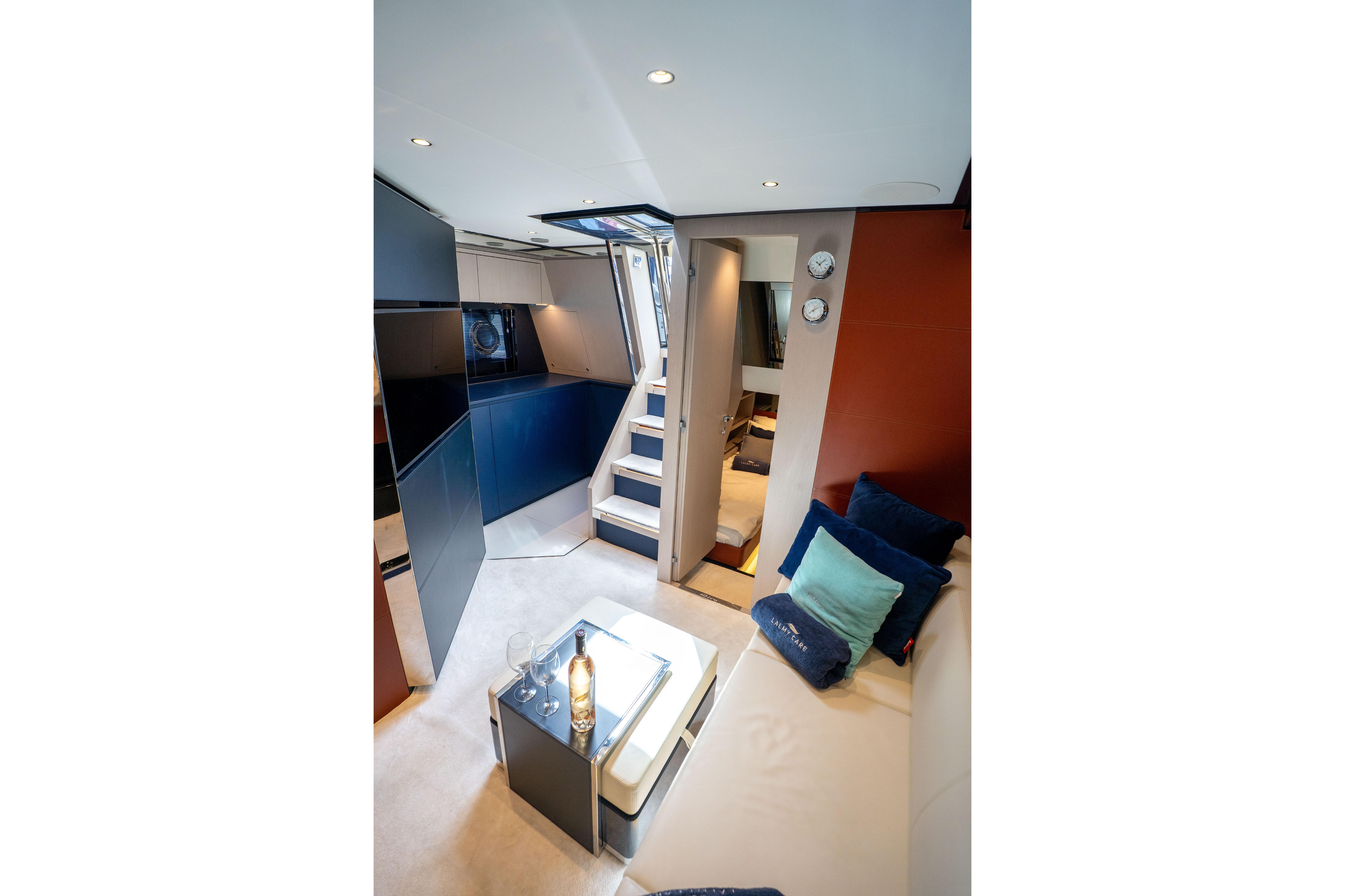 The cockpit offers generous seating and lounging areas, ideal for entertaining guests or relaxing in style. Wide side decks and a carefully considered layout ensure easy movement and comfort while underway.