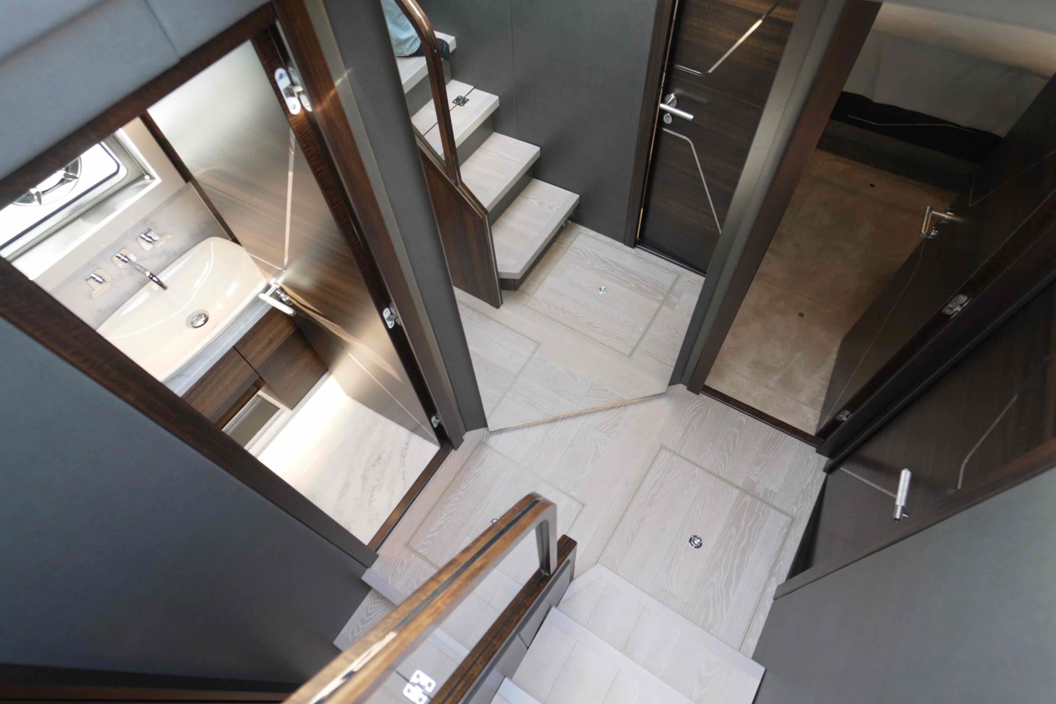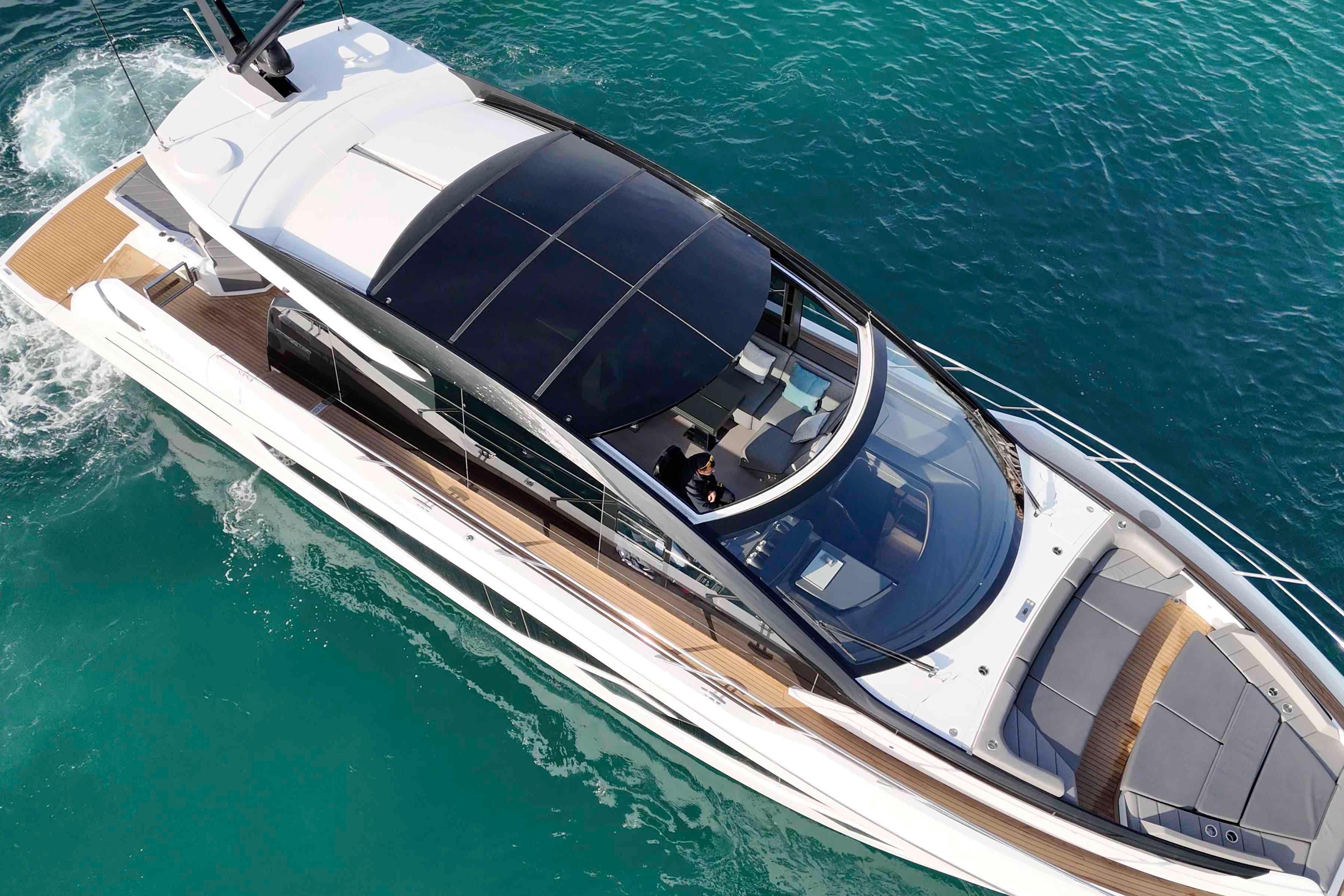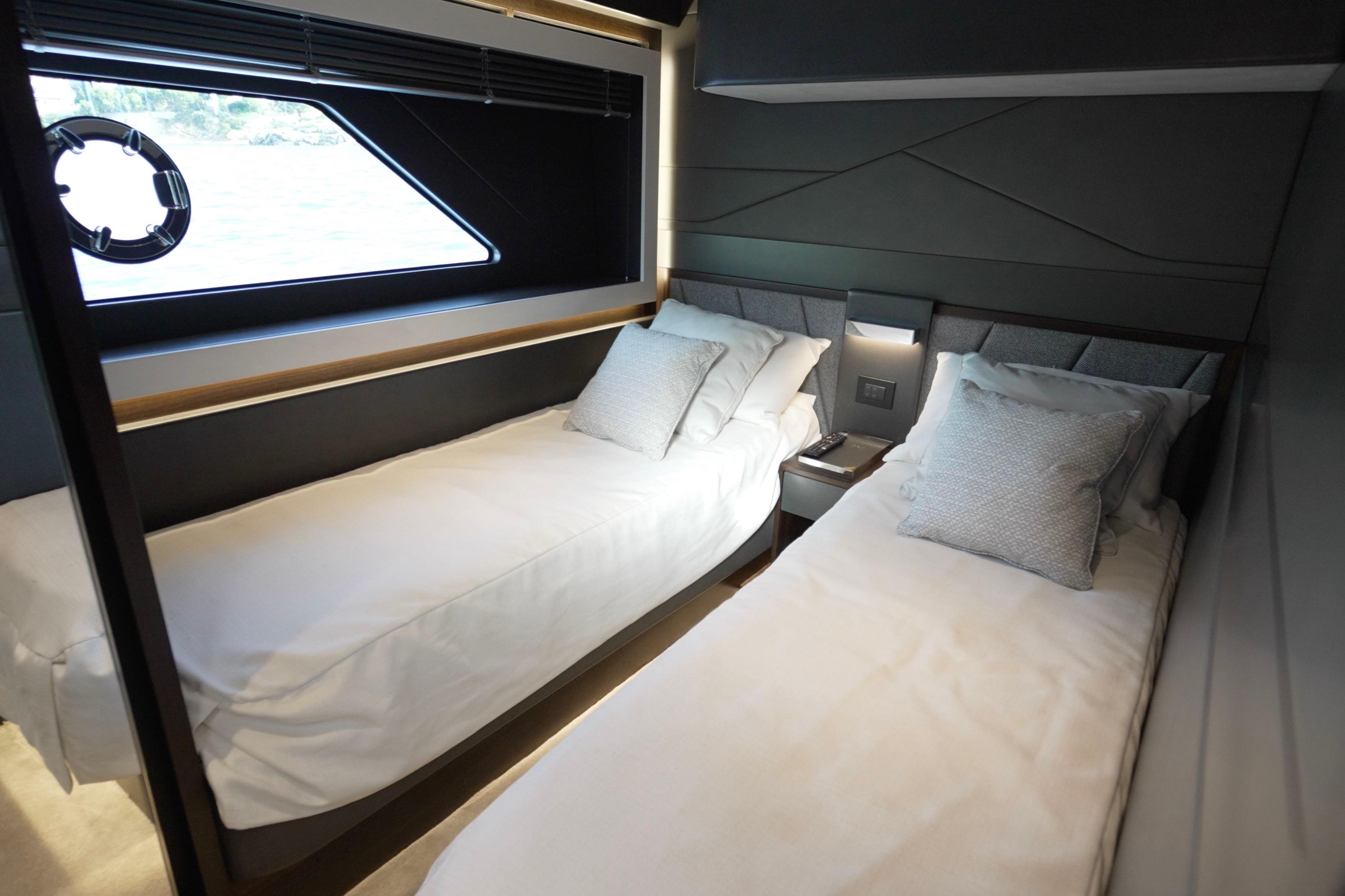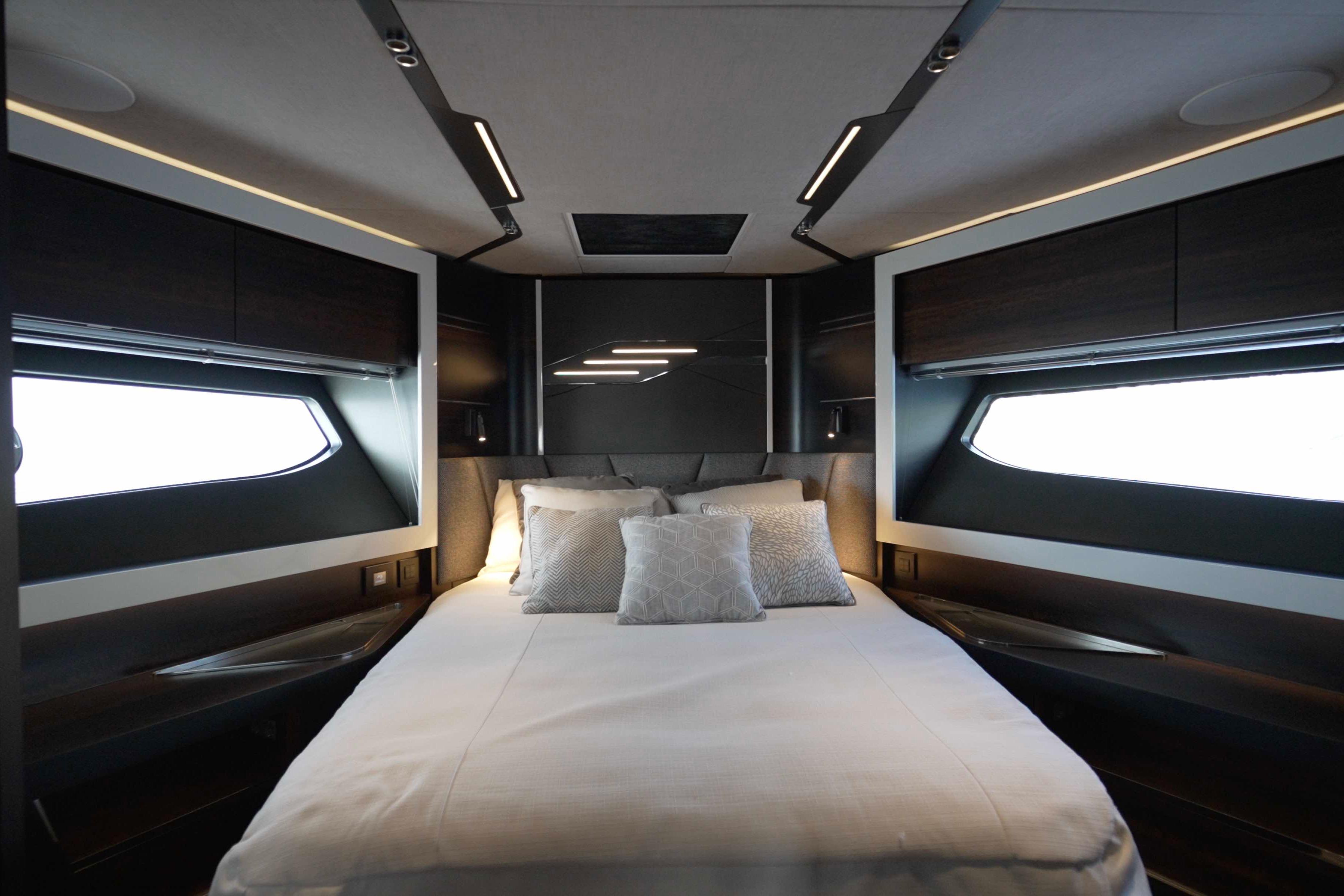 AccommodationsIl layout interno del Predator 65 è studiato per offrire comfort, privacy e vivibilità tipici di uno yacht di categoria superiore, mantenendo al contempo lo spirito sportivo della gamma.