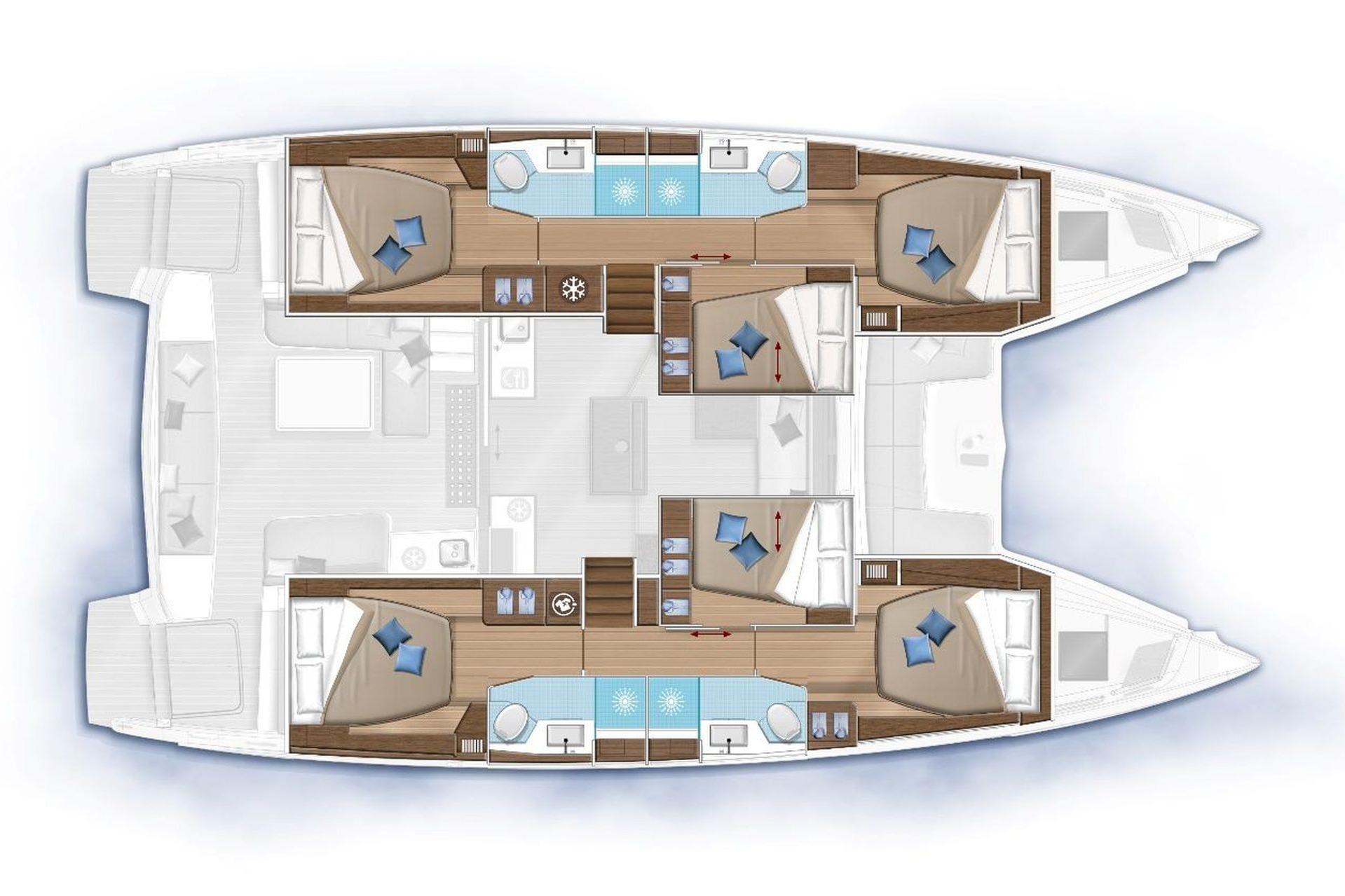 - Lagoon 50 in 6cabin layout with four heads
