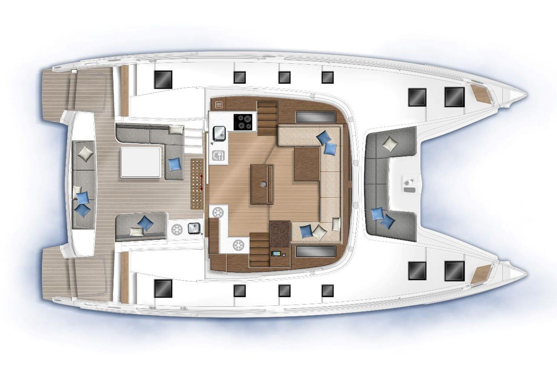 - Sun loungers on starboard and port outside cockpit