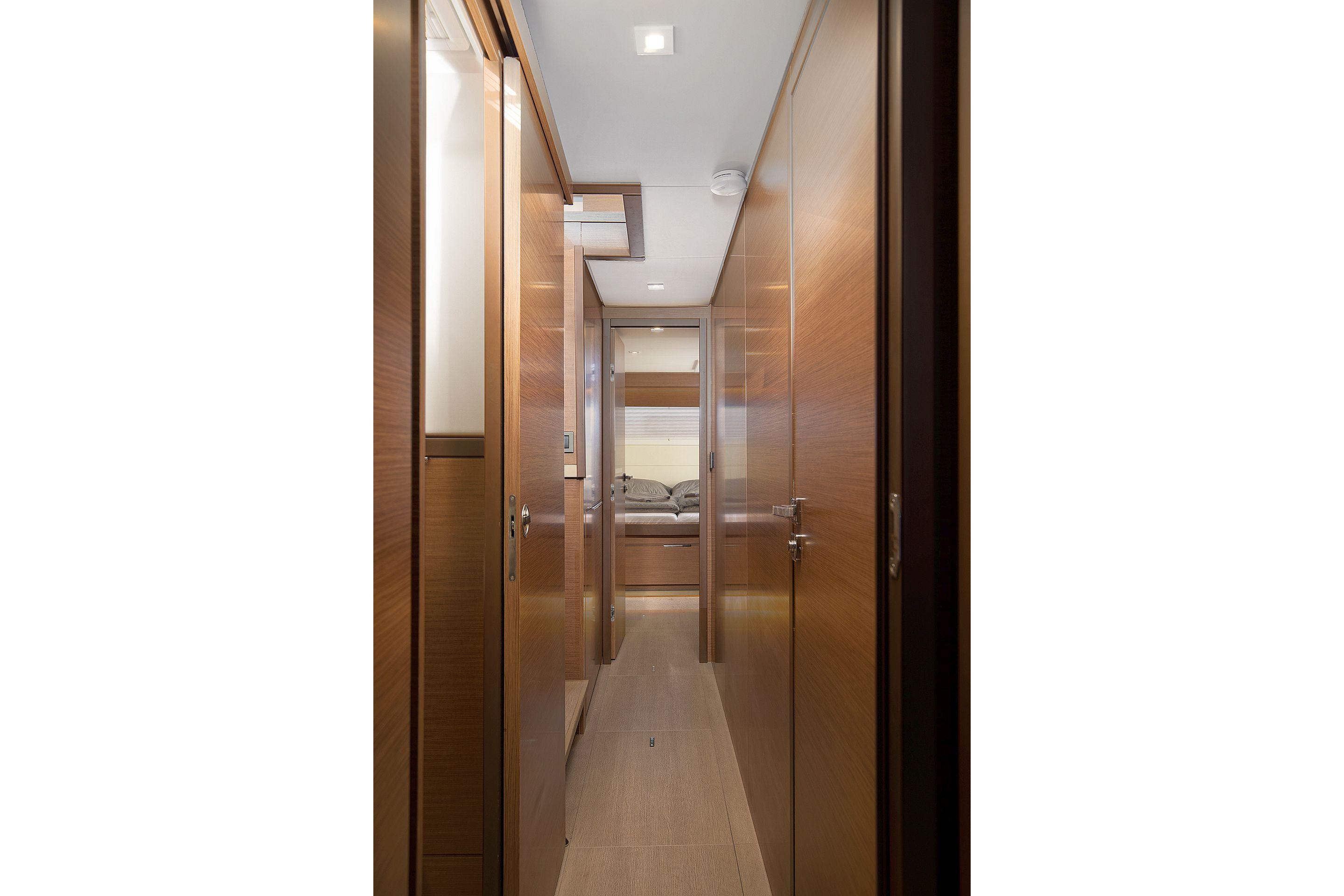 - Two lateral cabins with double berth, locker and deck hatch