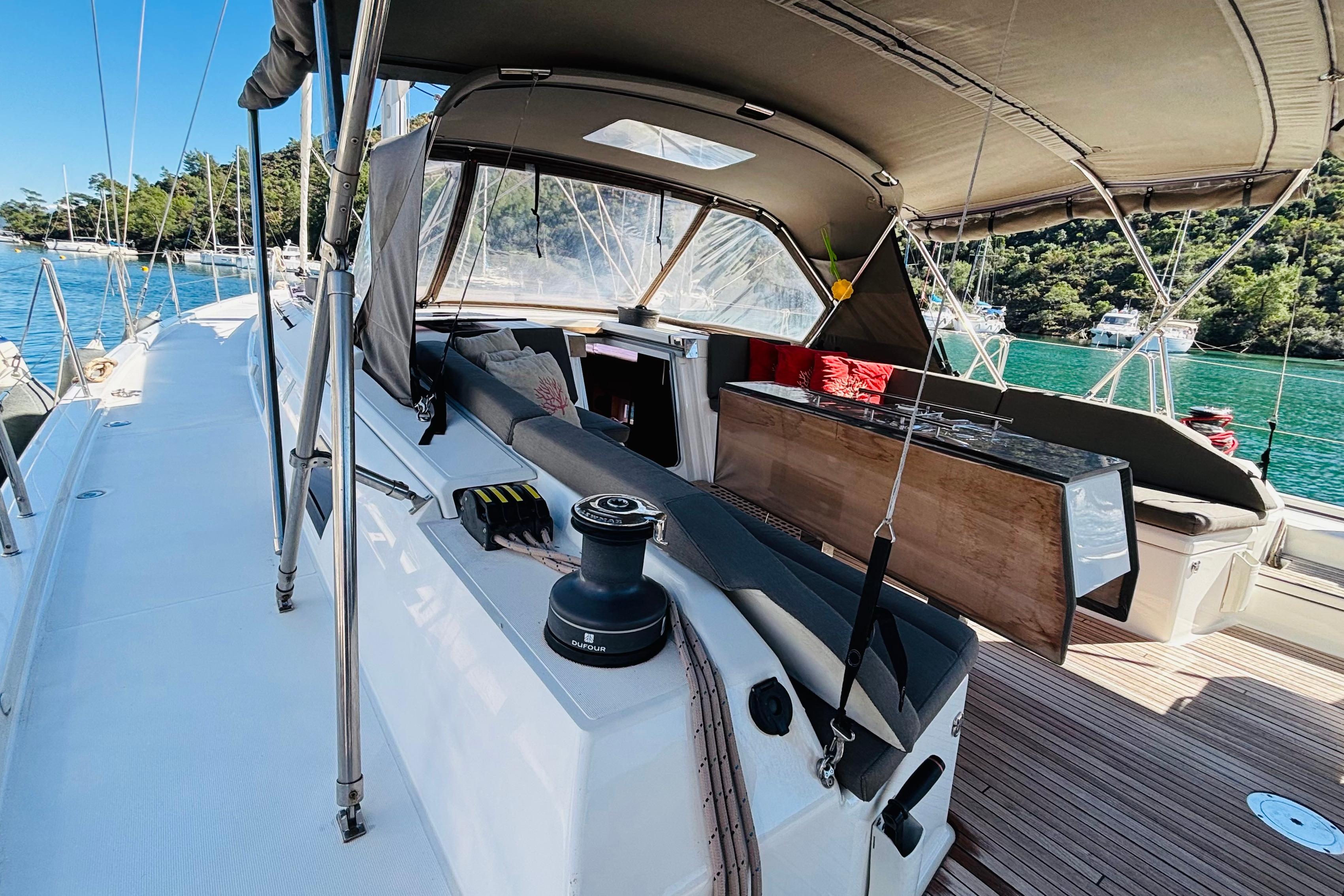 2021 DUFOUR 530 4 CABIN | PRIVATE USE With its modern design, performance-oriented hull structure, and comfortable living spaces, it is an ideal sailboat for both long voyages and hosting prestigious guests. Its spacious cockpit layout, airy saloon volume, and functional layout offer a premium lifestyle at sea.