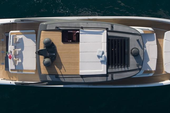 Stern sunlounge bimini