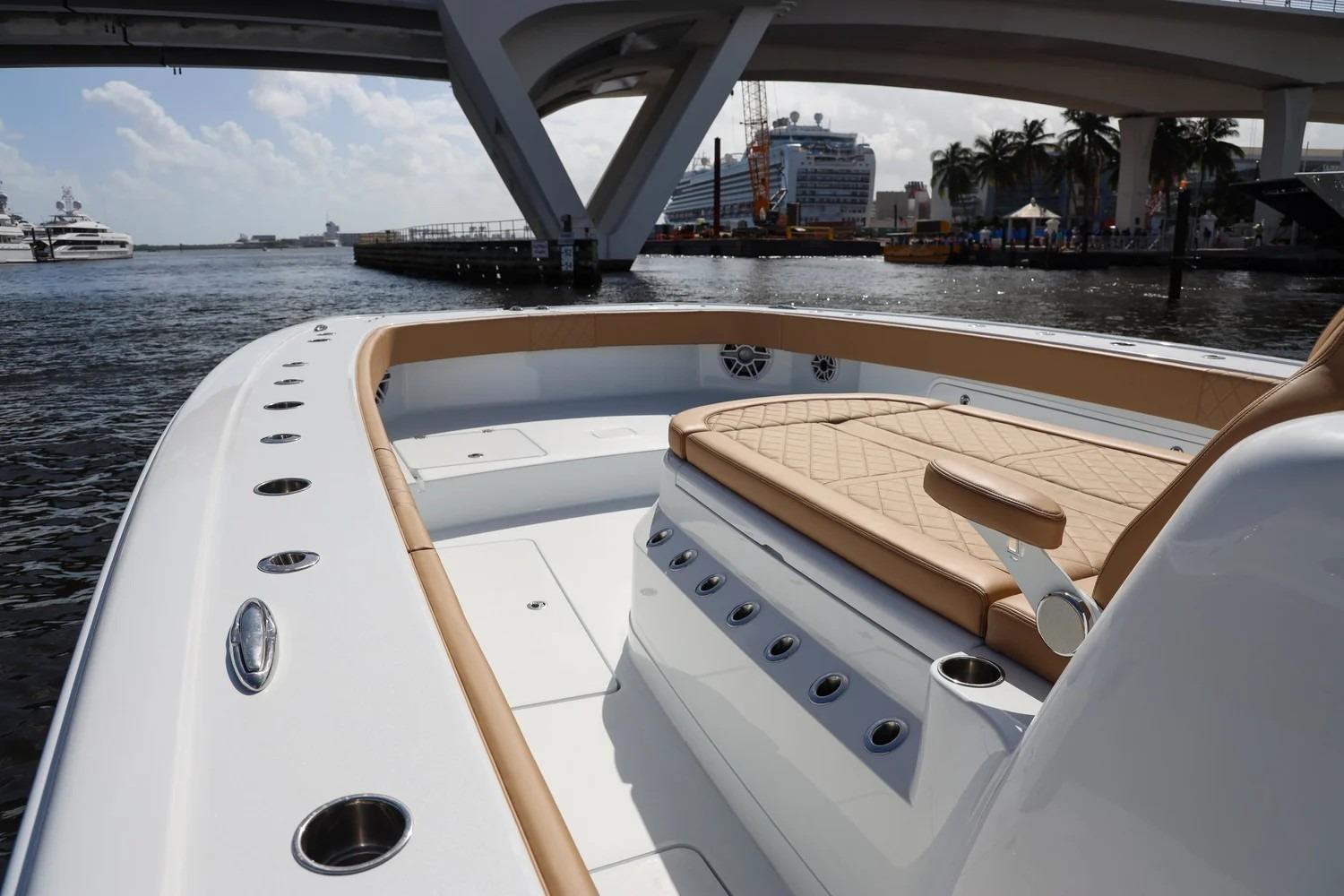 Powered by quad or quintuple outboard configurations, the Freeman 47 is capable of exhilarating top-end speeds with impressive fuel economy. The expansive beam provides remarkable deck space, creating a tournament-ready fishing platform complete with oversized livewells, abundant rod storage, premium electronics, and multiple insulated fish boxes. At the helm, cutting-edge navigation systems, plush seating, and a thoughtfully designed layout ensure both captain and crew travel in comfort and control.