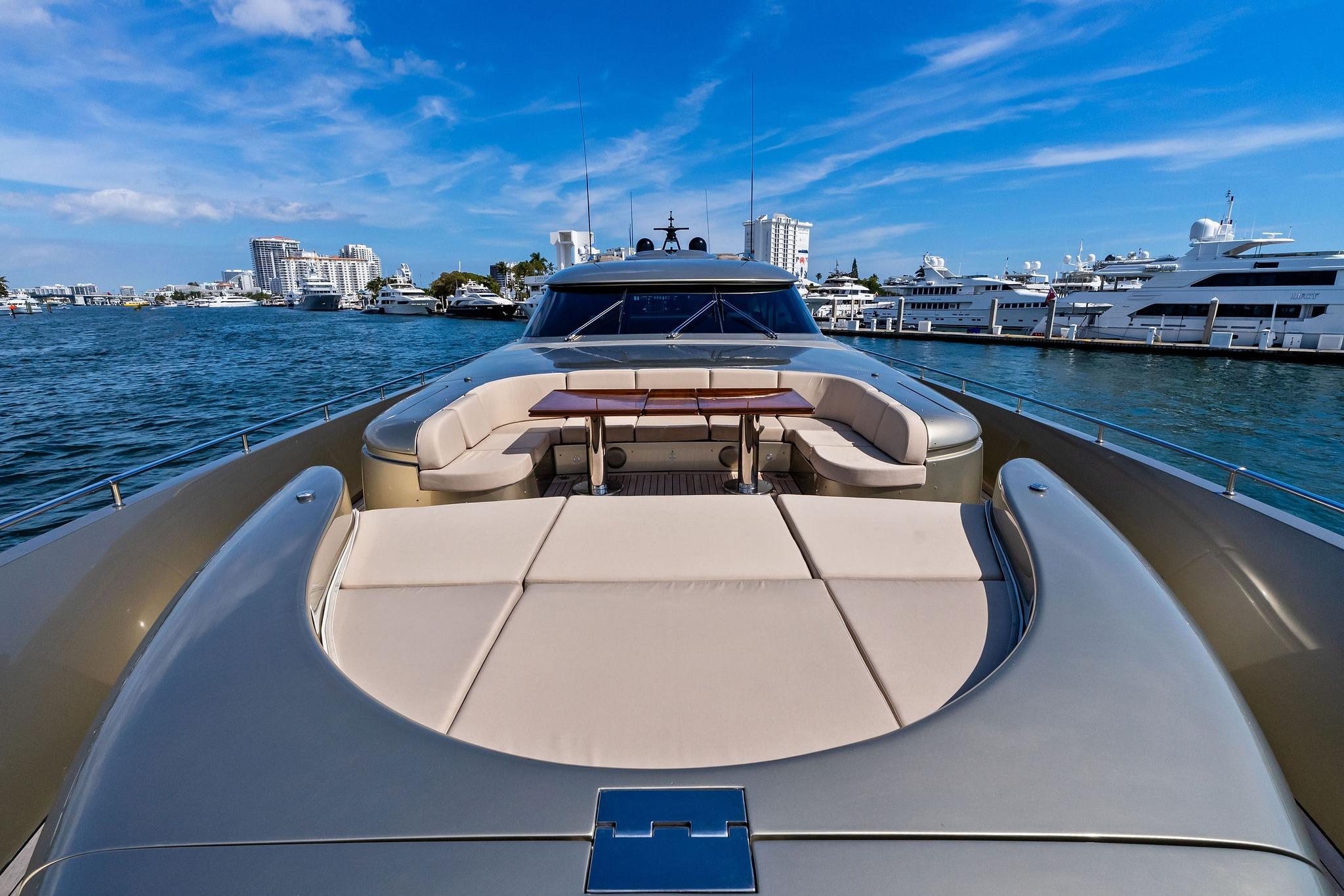 With her lightweight composite construction, triple MTU waterjet propulsion, and a proven cruise of 33 knots, DIAMOND delivers a rare combination of performance and luxury in the 35–40m market. Her dramatic split-level atrium salon, expansive outdoor areas, and major recent refit make her a standout opportunity among modern European sport yachts.