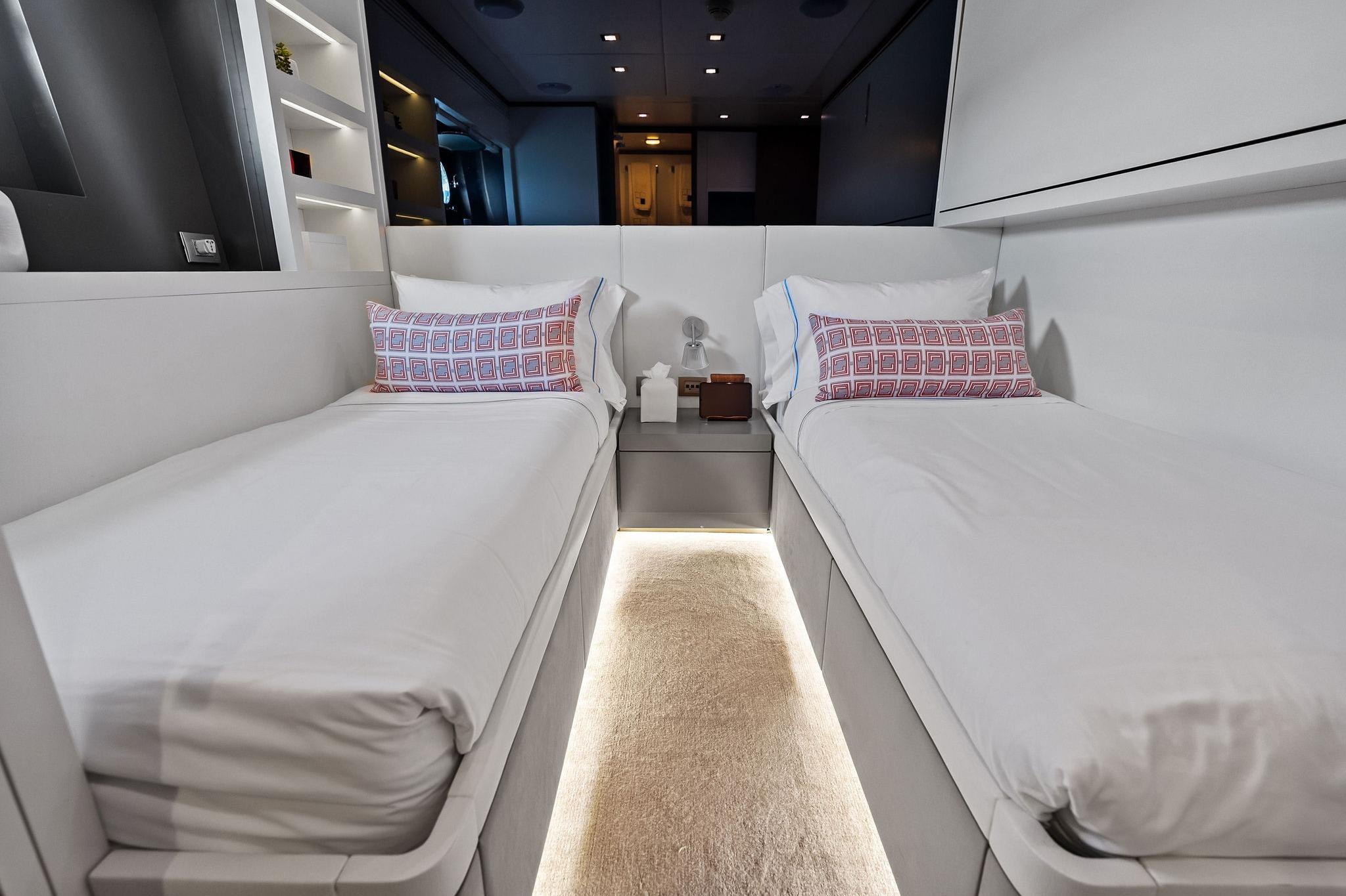 - Crew Accommodation: Up to 6 crew in 3 bunk cabins