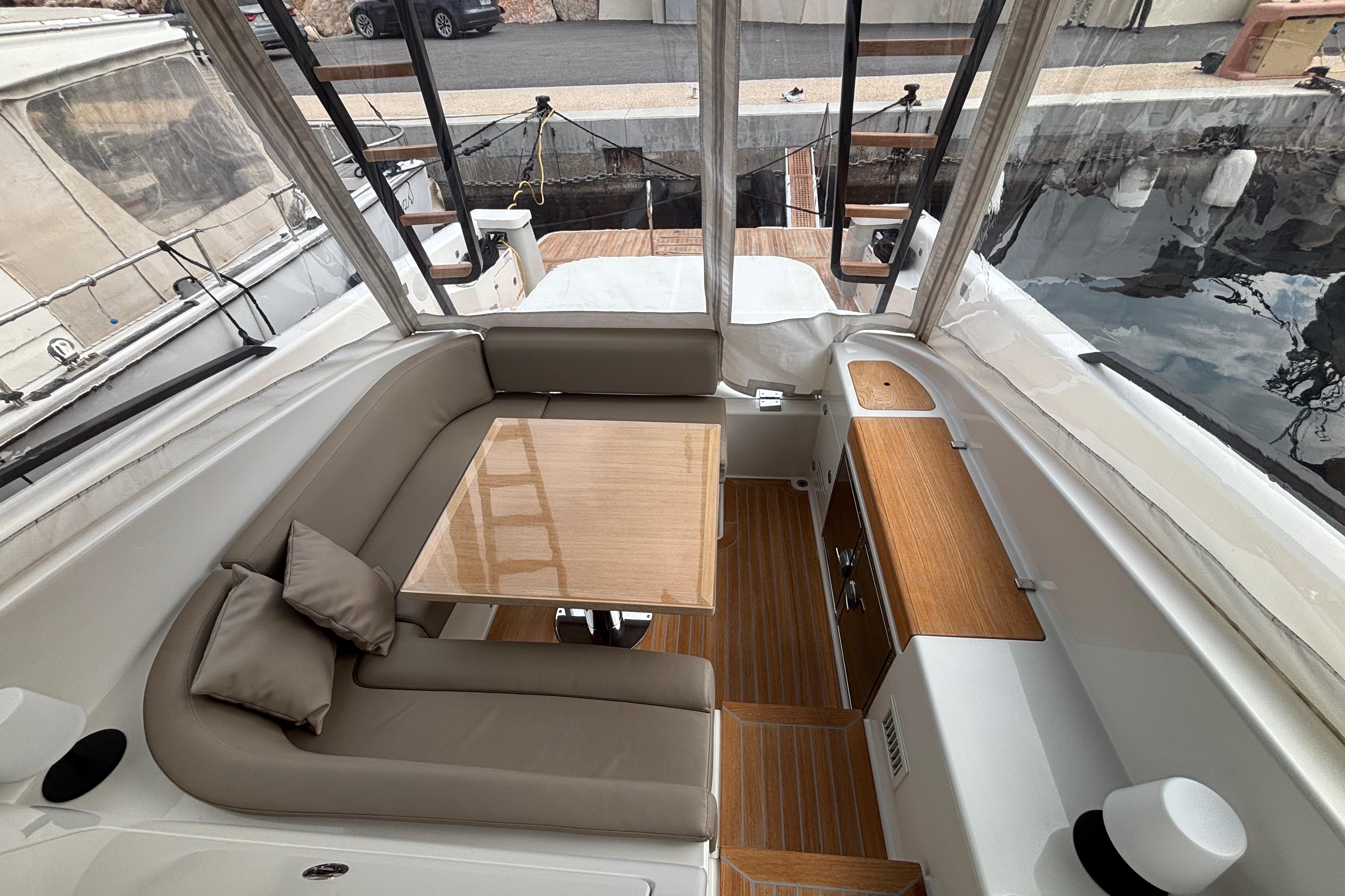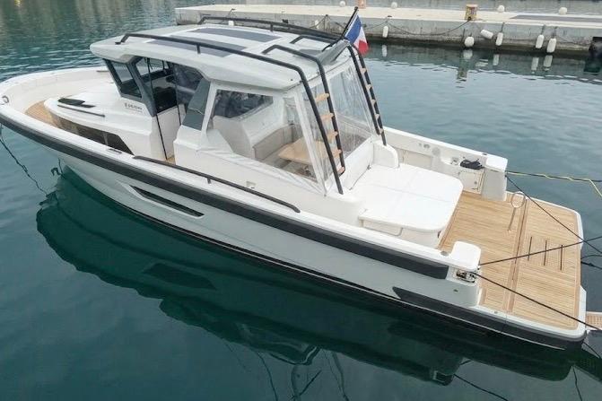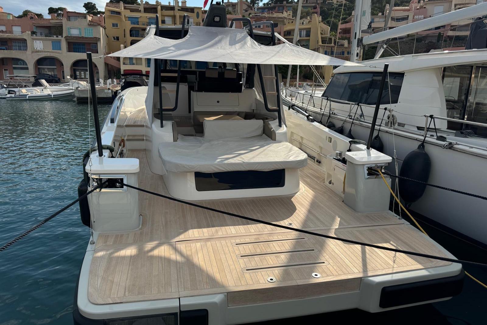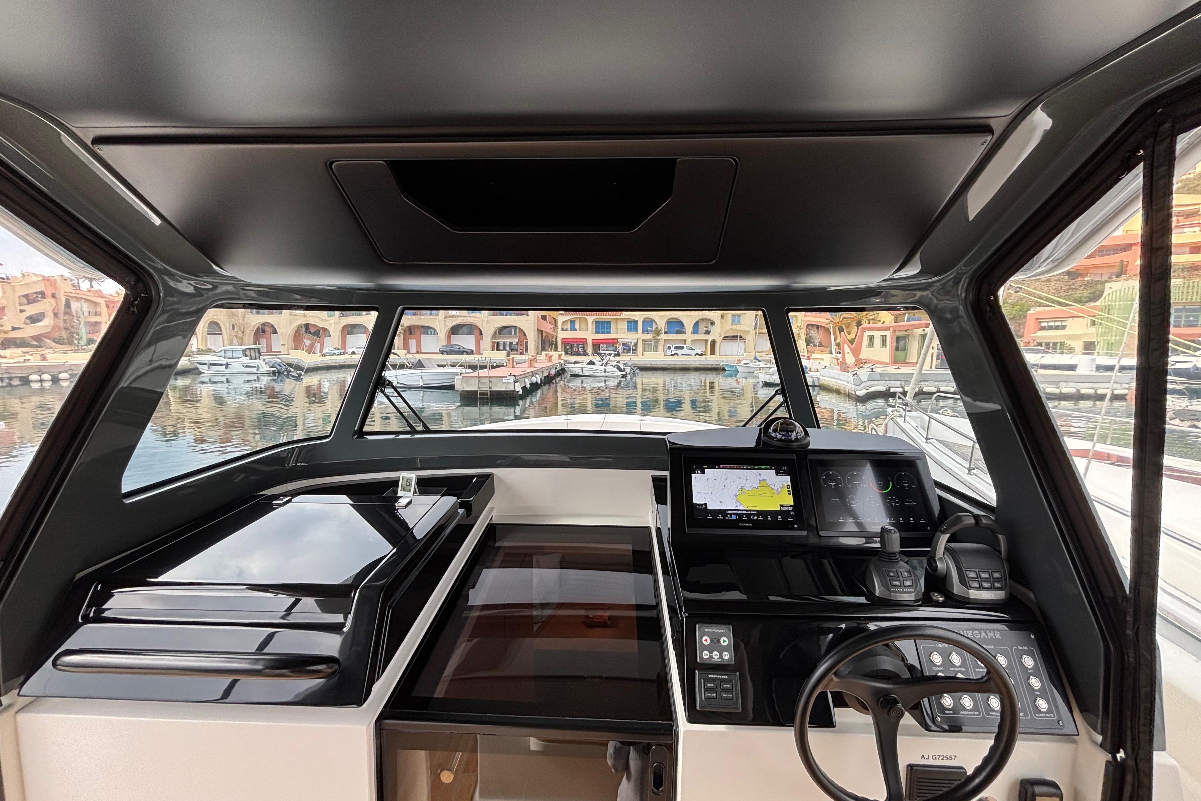 CAP MED a le plaisir de vous proposer ce superbe Bluegame BG42 de 2021, unité premium du chantier italien Bluegame (groupe Sanlorenzo), dessinée par Zuccon International Project. Véritable référence du segment open haut de gamme, le BG42 se distingue par son concept walkaround à circulation 360°, son cockpit protégé et ses volumes extérieurs exceptionnels, offrant un confort remarquable en Méditerranée comme en croisière côtière (CE Catégorie B). Propulsé par 2 x Volvo Penta D6 IPS 650 développant 480 CV chacun et totalisant seulement 130 heures, ce modèle combine puissance, rendement et stabilité. La transmission IPS associée au joystick Volvo assure des manœuvres d’une précision remarquable, complétée par un propulseur d’étrave Side Power 75 pour une maîtrise totale au port. Le système Interceptor optimise automatiquement l’assiette et améliore le confort dynamique en navigation, tandis que les moteurs bénéficient d’un suivi rigoureux avec révision tous les deux ans et mise à jour récente. L’autonomie énergétique constitue un véritable atout avec un groupe électrogène 7 kW permettant une alimentation 220V indépendante au mouillage comme en navigation, faisant fonctionner Climatisation BTU 16000, froid et équipements sans dépendre du quai. L’installation est renforcée par 2 panneaux solaires de 220W (2024), un régulateur Victron SmartSolar Bluetooth, un shunt Victron Bluetooth et un chargeur Victron Skylla 24V 80A trois sorties (2025) garantissant une gestion et une recharge optimales du parc batteries. Un dessalinisateur Idromar 130L/h (2025) assure une autonomie totale en eau douce pour les longues escales. Le nouveau boîtier Dometic (2025) gère automatiquement l’alimentation des trois réfrigérateurs en 220V ou 24V selon la source disponible, complété par un congélateur extérieur inox Frigonautica (2024). Le pont est entièrement optimisé pour la vie en extérieur avec passerelle hydraulique et plateforme arrière immergeable commandées par tableaux inox Opacmare (2025), fermeture complète du cockpit par bâches Crystal transparentes (2024) et toiles d’ombrage latérales, Bimini avec toiles d’ombrage montées sur pôles carbone couvrant les zones avant et arrière, chauffage extérieur Webasto 5 kW pour un confort toutes saisons, télécommande sans fil Lewmar pour compteur de chaîne facilitant les manœuvres de mouillage, ainsi que winchs électriques à l’avant et à l’arrière pour des opérations d’amarrage précises et sans effort. L’intérieur, repensé par Studio Souchon — cabinet de design collaborant également avec Sanlorenzo — offre une atmosphère raffinée avec finitions soignées, table de carré amovible électrique, éclairage adaptatif, cabine optimisée pour réduire la sensation de roulis grâce à son orientation, et détails en alcantara apportant une touche yacht de luxe. Unité parfaitement entretenue, prête à naviguer, configurée pour la grande croisière avec autonomie renforcée et niveau d’équipement rarement proposé sur le marché.