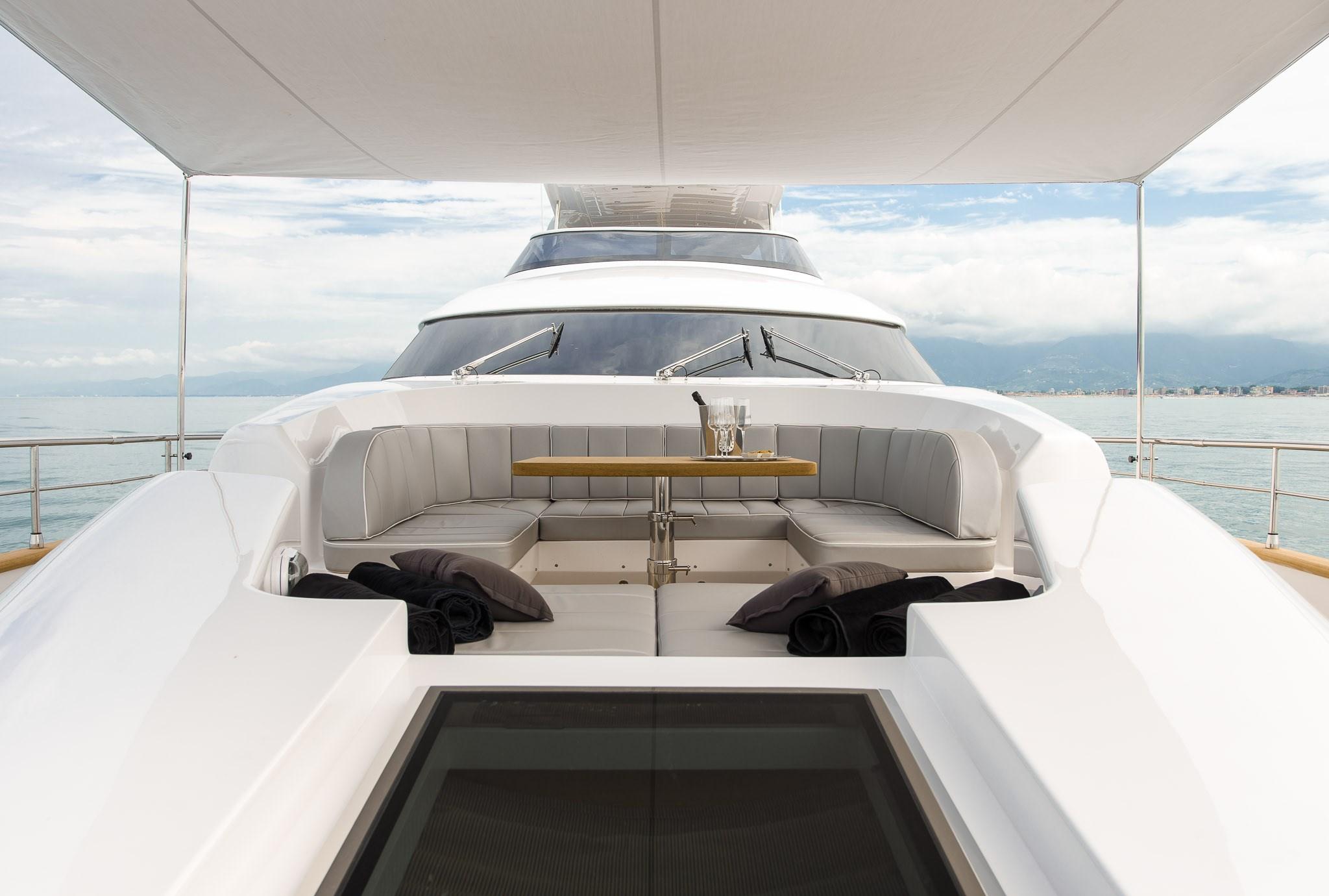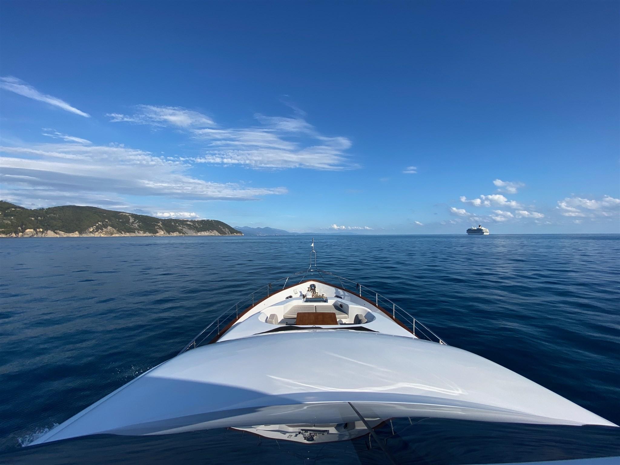 CMC electric fins (zero speed + navigation), watermaker Idromar, bow + stern thristers, carbon fiber Hard Top on fly, domotic touch screen at the dash + redundant manual back up in ER + dedicated App, tender Williams 385, up/down platform astern, Icemaker with drinking water dedicated supply, jacuzzi tub on fly, cockpit enclosure, fresh water plug in bow anchor room, sliding beds in midship twins each one with pullman bed, underwater lights, flybridge tv system, teak on fly, sink + fridge cabinet on fly, nr 2 grill BBQ separate cabinet on fly, tv plug predisposition on front dinette, portholes alarms, nr.3 camera system, centralized hoover, yacht controller, safe in master cabin + front crew cabin + Captain cabin astern, Audio-Video entertainment system: Samsung TV + BOSE audio.