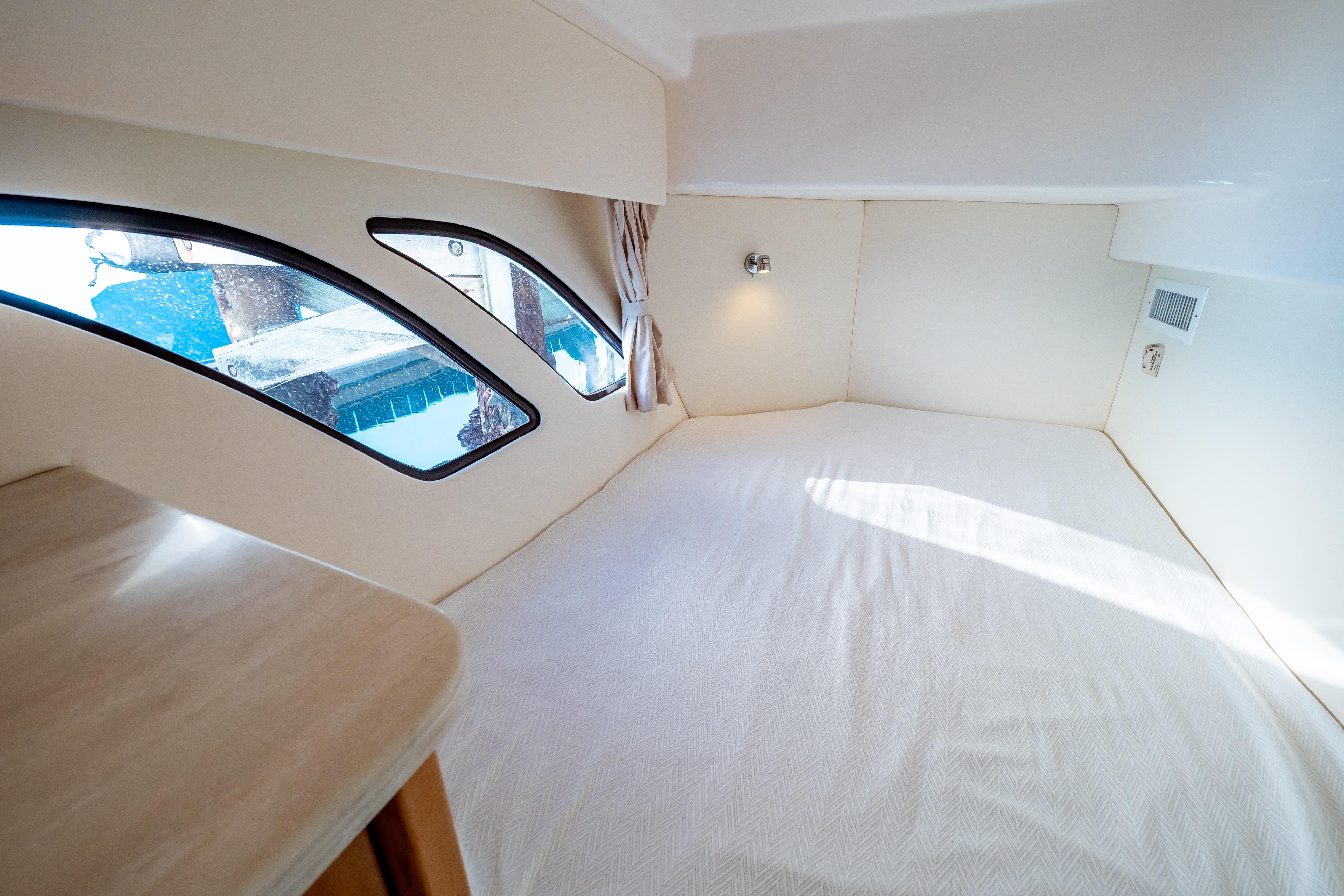 - Dual System Air Conditioning for Cabin (1 – 18,000 BTU Salon Area & 1 – 7,000 BTU Staterooms)