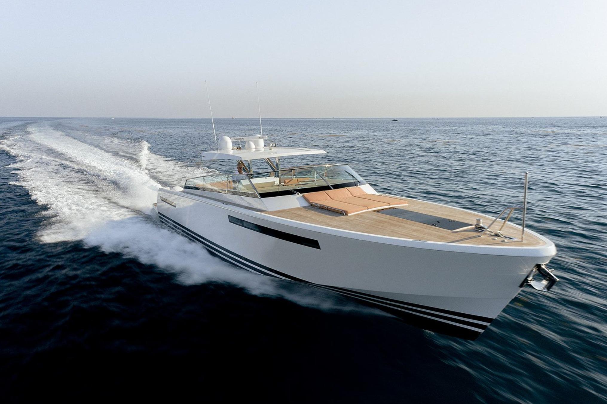 Equally capable as a luxury day boat or weekend cruiser, her thoughtfully designed interior features a forward owner’s stateroom with en-suite bath, complemented by two additional guest cabins. The result is a versatile layout ideal for extended cruising without compromising performance or style.