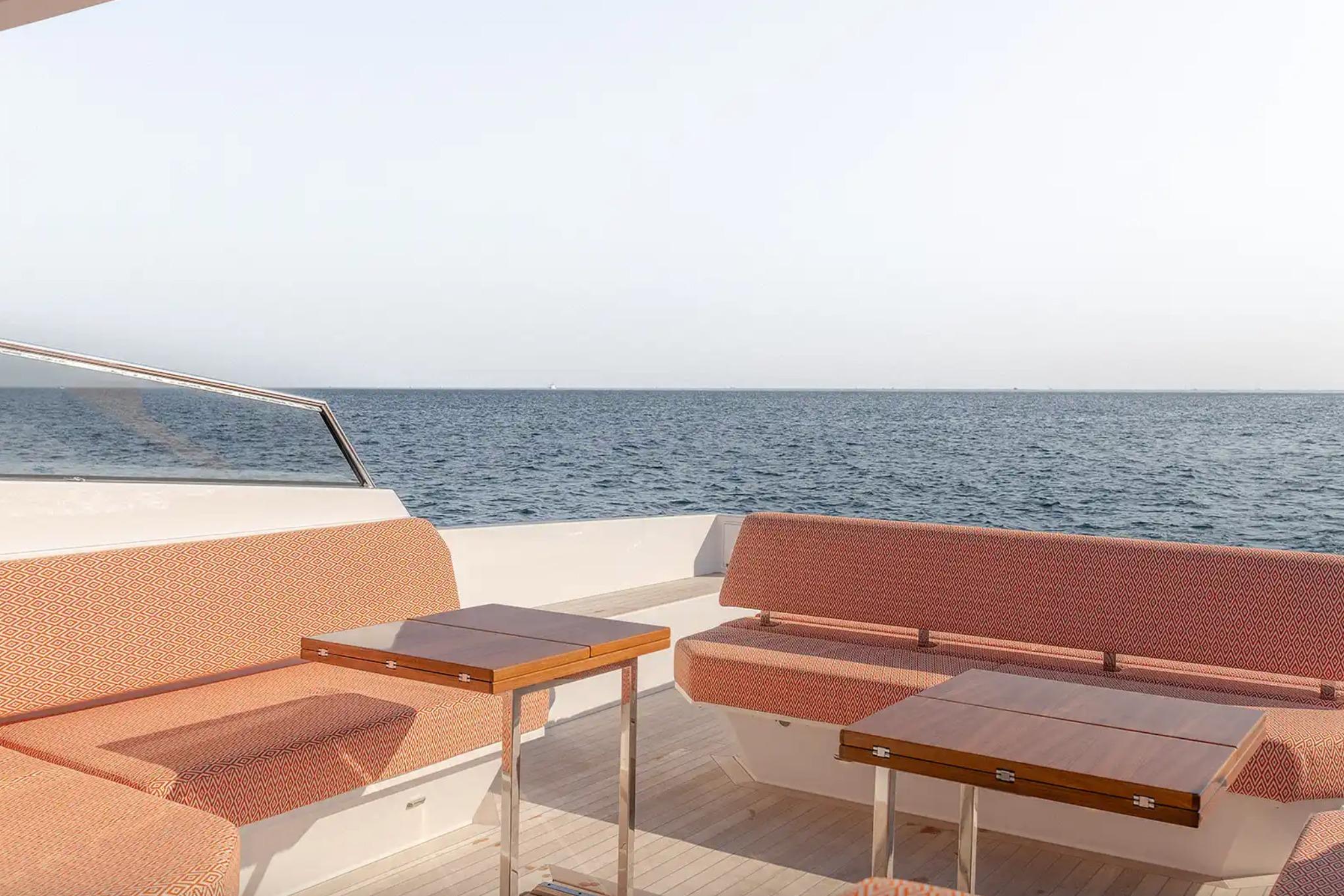 With capacity for up to 20 guests, the expansive cockpit seamlessly connects to a generous, multifunctional swim platform, creating an exceptional setting for entertaining, watersports, or relaxed days in the sun. Her open layout maximizes space, comfort, and social flow, making her equally suited for vibrant gatherings or private escapes.