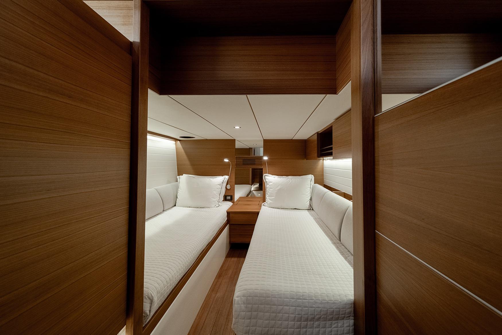 Constructed with lightweight carbon fiber, she offers an impressive combination of speed, efficiency, and remarkably quiet operation. Her responsive handling delivers the agility of a much smaller sport boat, while maintaining the stability and refinement expected of a yacht in her class.
