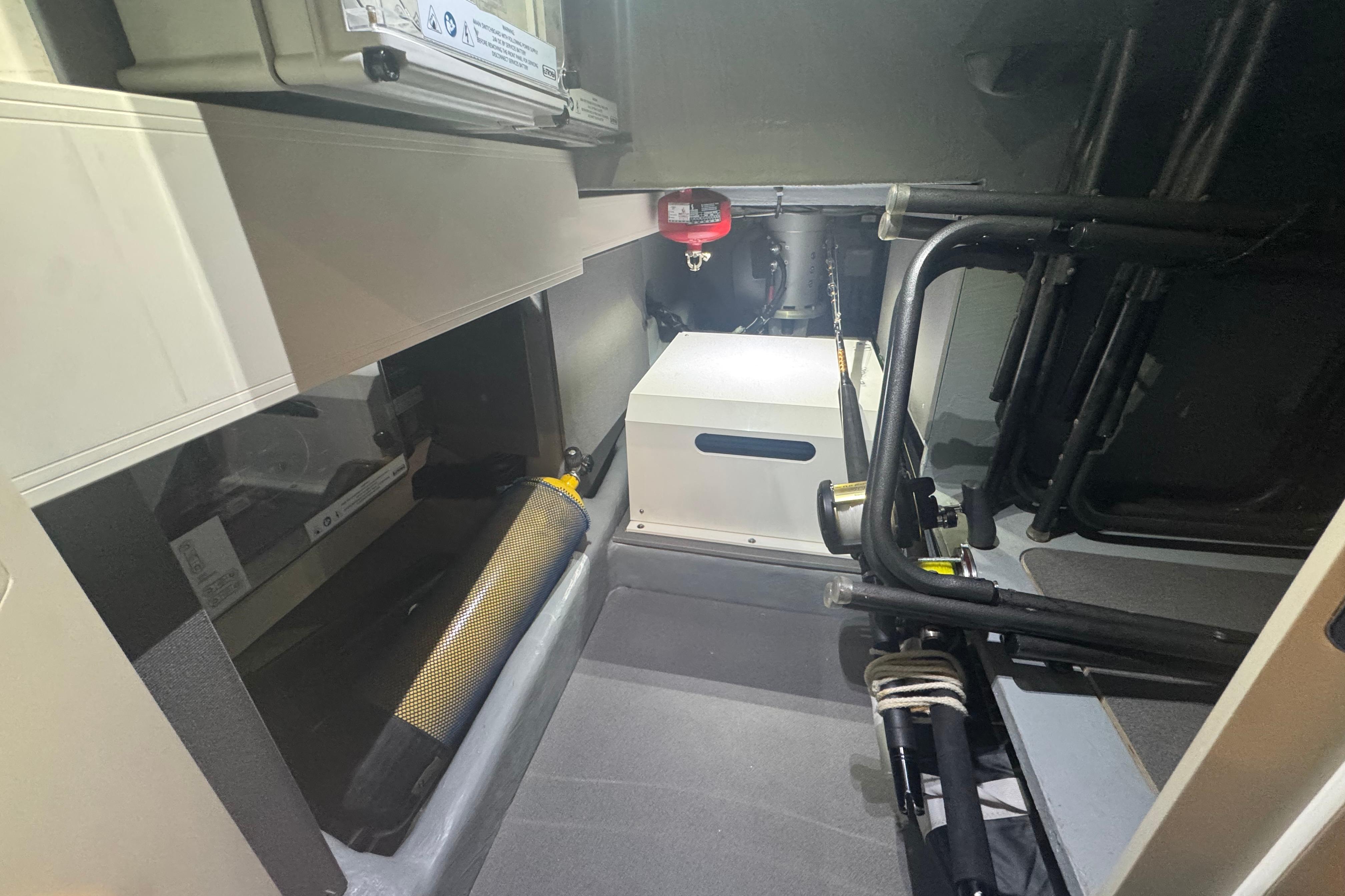 La cabine VIP située au centre du bateau pourrait tout à fait être considérée comme une seconde suite propriétaire, de par son espace, sa hauteur sous barrot, sa salle de bains privative et ses finitions soignées. La troisième cabine invités est équipée de série d'un système électrique permettant de la transformer facilement en lit double à deux lits simples. Enfin, une cabine équipage polyvalente offre un accès pratique depuis la plateforme arrière.