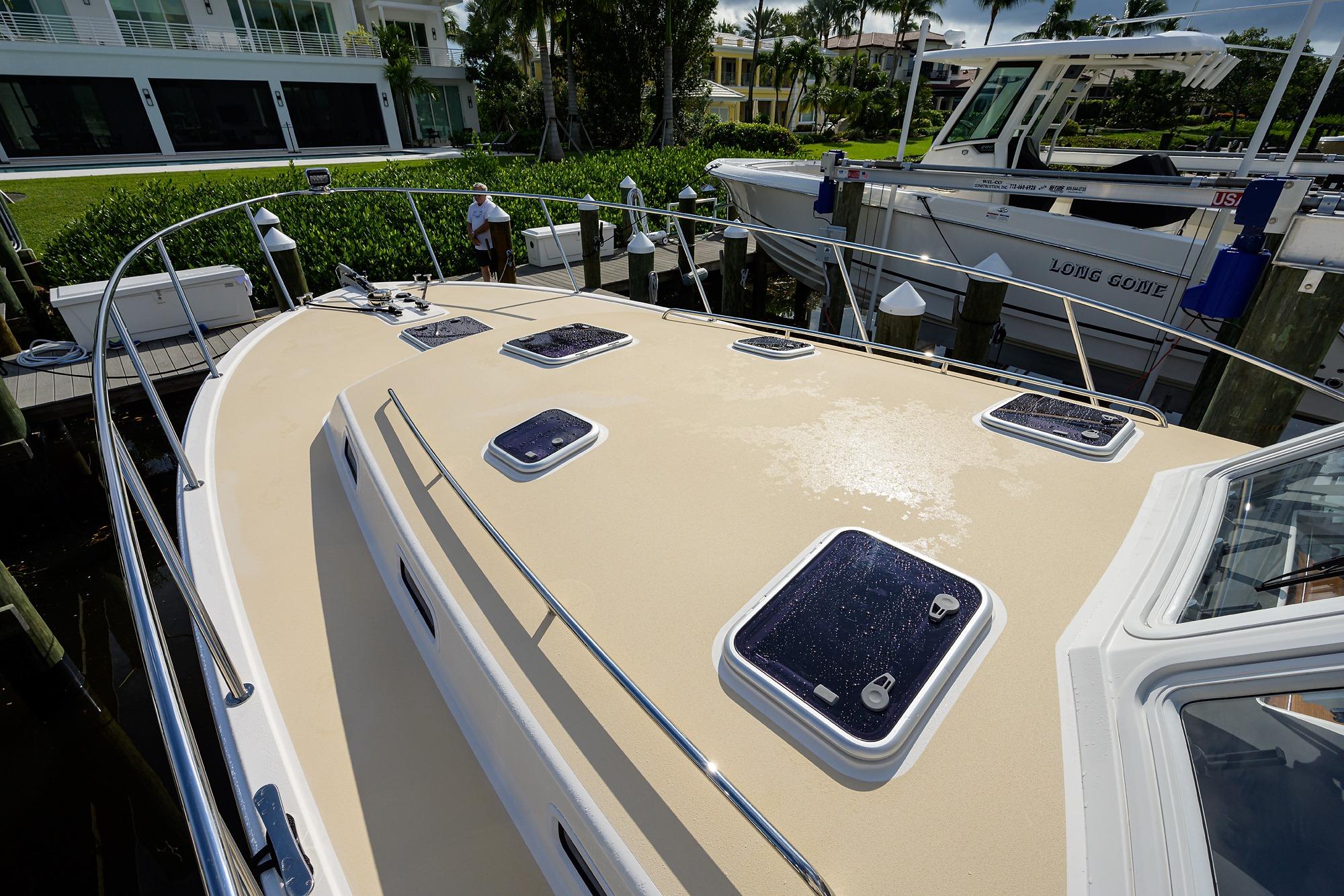 - Synthetic teak decking in cockpit and pilothouse