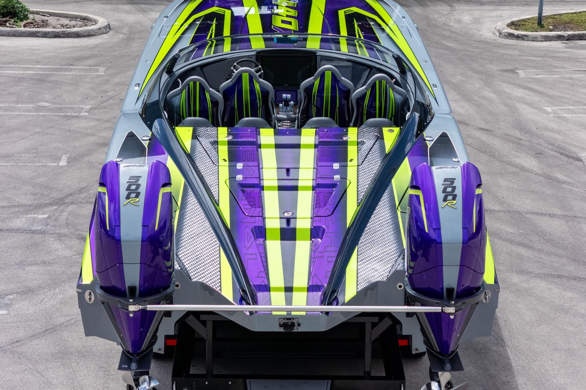 2024 MTI 440X powered by twin Mercury Racing 500R’s with approx. 139 hours. Mercury Platinum Warranty through February 28th 2032. Black painted aluminum Evolution Trailer.