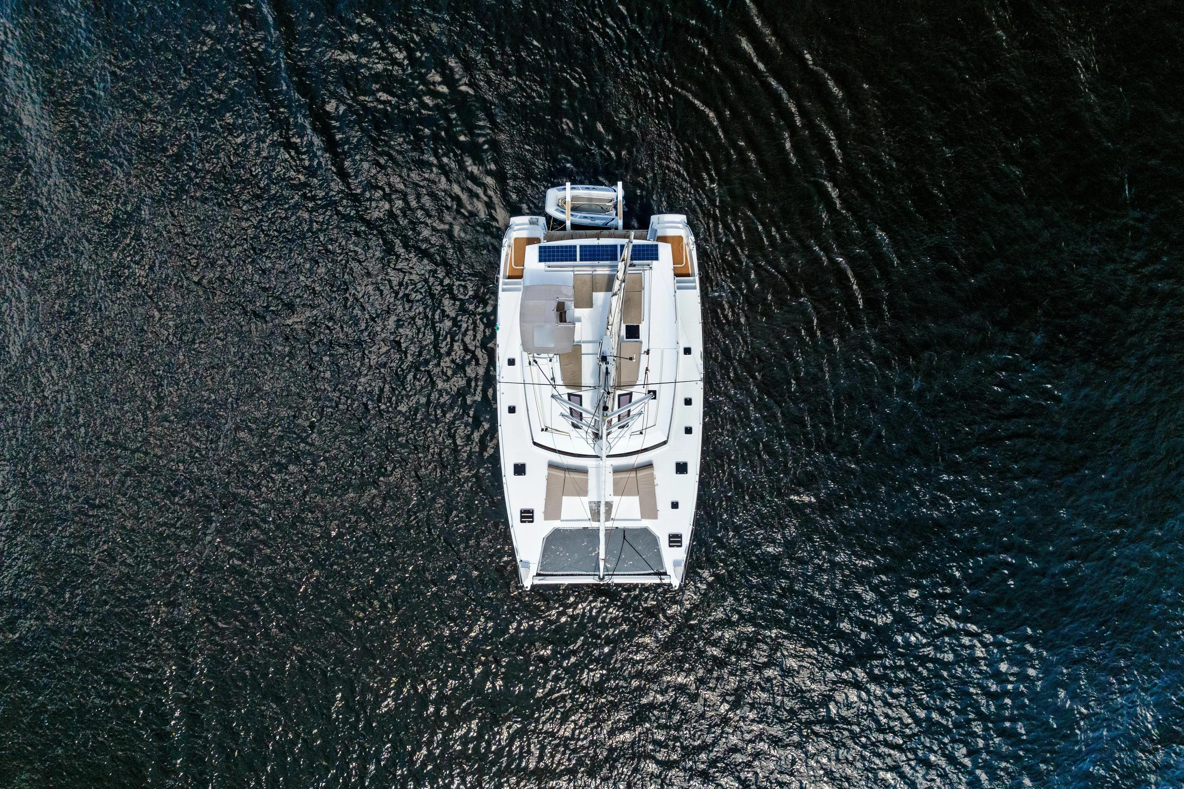 Depuis lors, ce modèle continue de recevoir des éloges critiques à travers le monde pour ses lignes distinctives, son style sophistiqué, ses espaces de vie spacieux et ses performances exceptionnelles en mer. Les propriétaires adorent le mouvement et la communication sans couture entre le cockpit, la station de barre et le pont salon, tandis que l'incroyable espace dans le salon évoque l'ambiance de vue à 360 degrés traditionnellement trouvée uniquement sur des yachts beaucoup plus grands. Le design du Saba 50, grâce à l'équipe d'architectes navals, est le plus grand catamaran Fp qui peut vraiment être manœuvré seul depuis sa station de barre unique. Un design élégant et innovant, le yacht à voile Saba 50 attire tous les regards où qu'il aille. En navigation, SERENITY a fière allure à l'ancre, surtout la nuit avec son éclairage de pont bleu et ses lumières sous-marines.