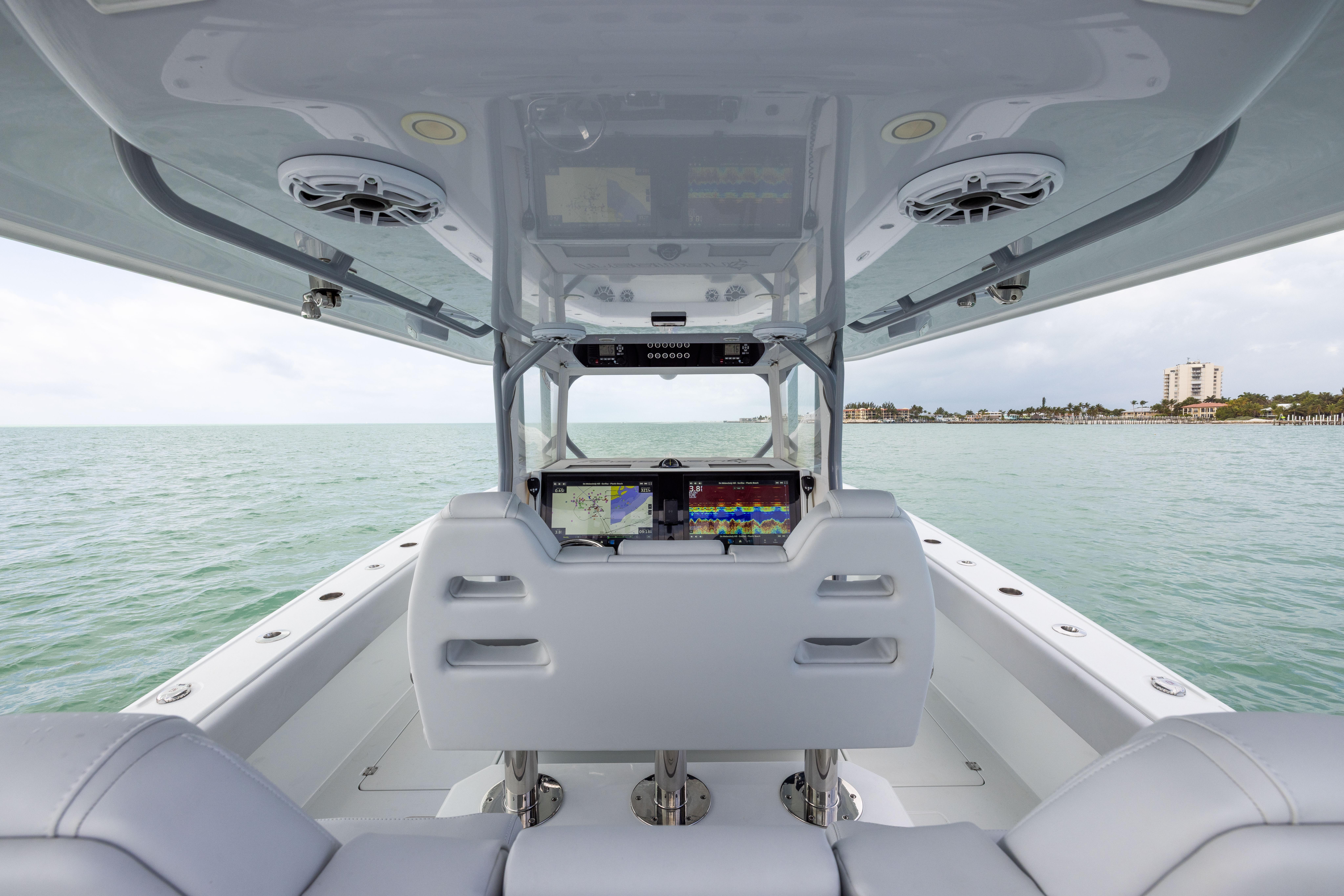 With dual-row Lebroc seating, an XL hardtop, premium JL Audio sound system, and extensive lighting throughout, this Freeman delivers the perfect balance of serious offshore capability and comfort.