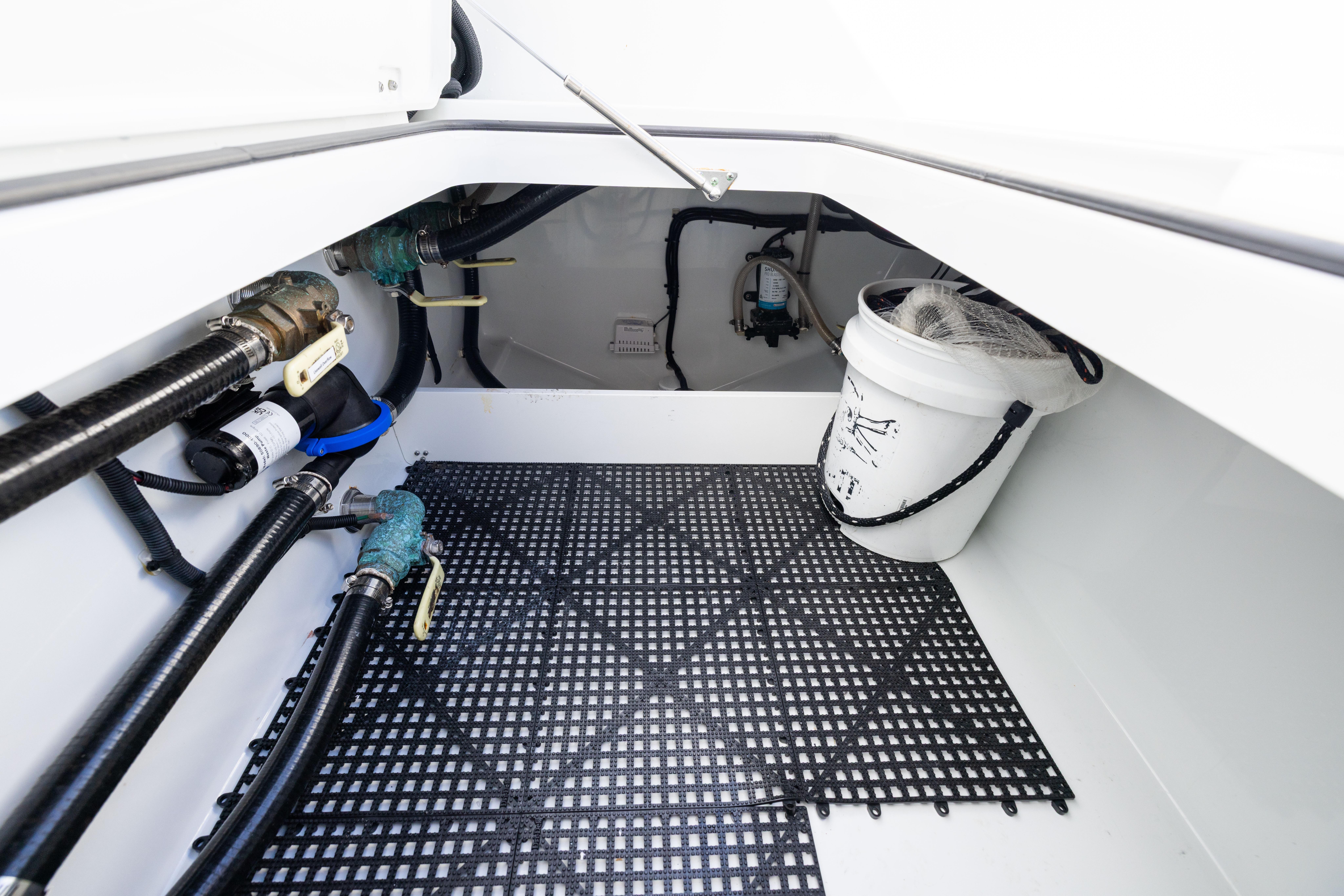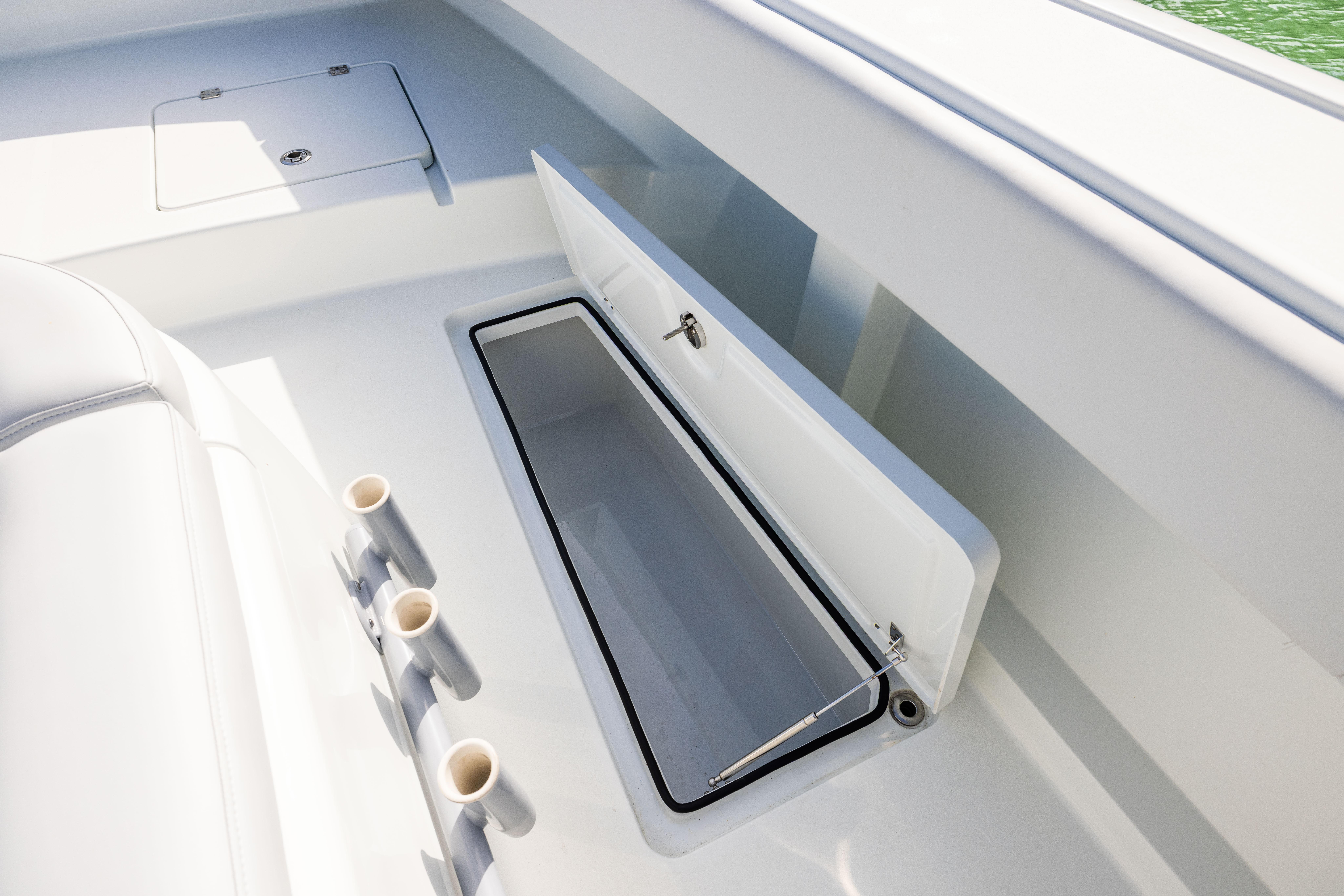 Port and starboard in-floor livewells with see-through lids