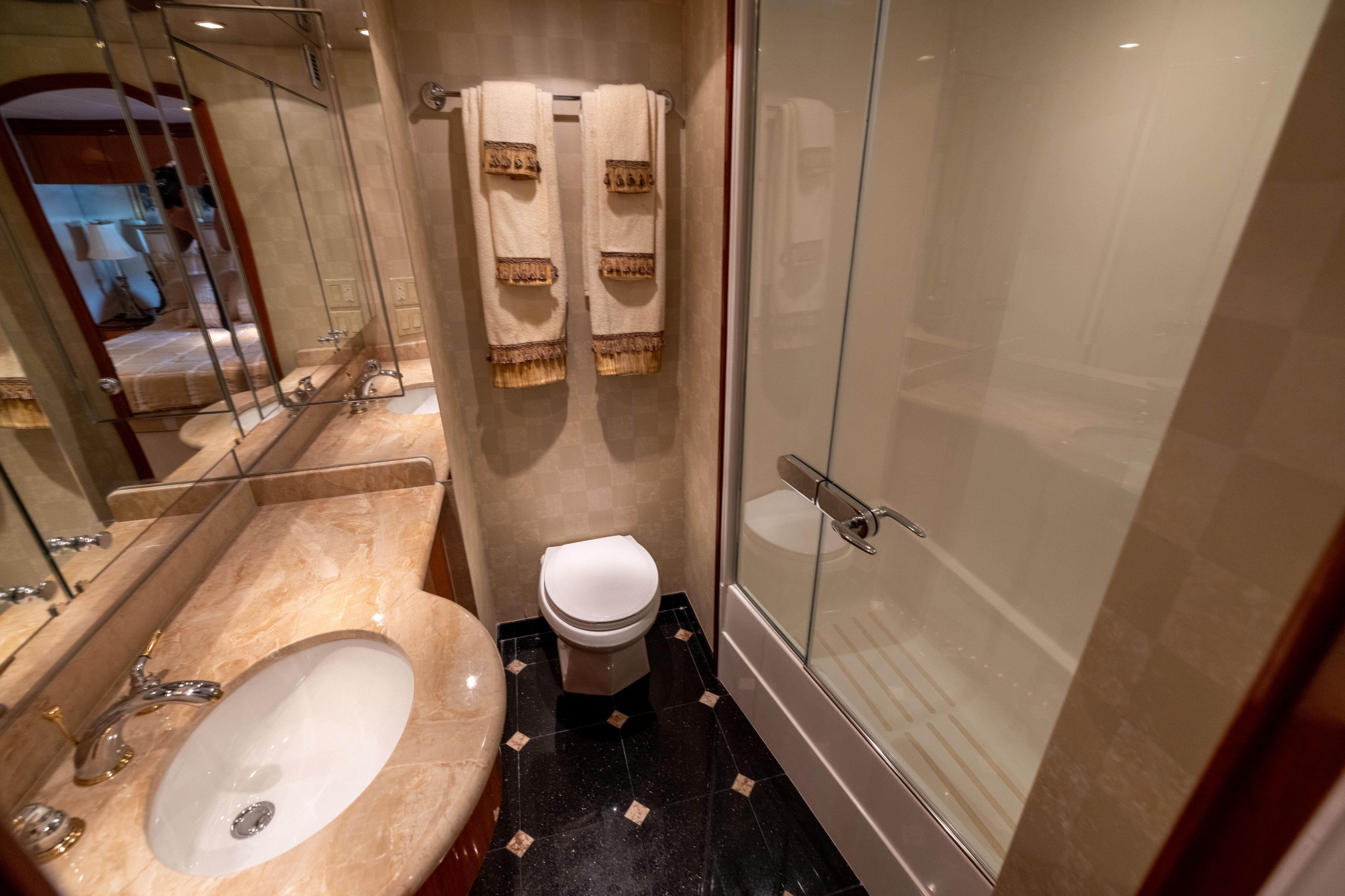 - Three lower forward heads had the countertops changed and sinks replaced along with all the drain and water fixtures in all the heads on the boat.