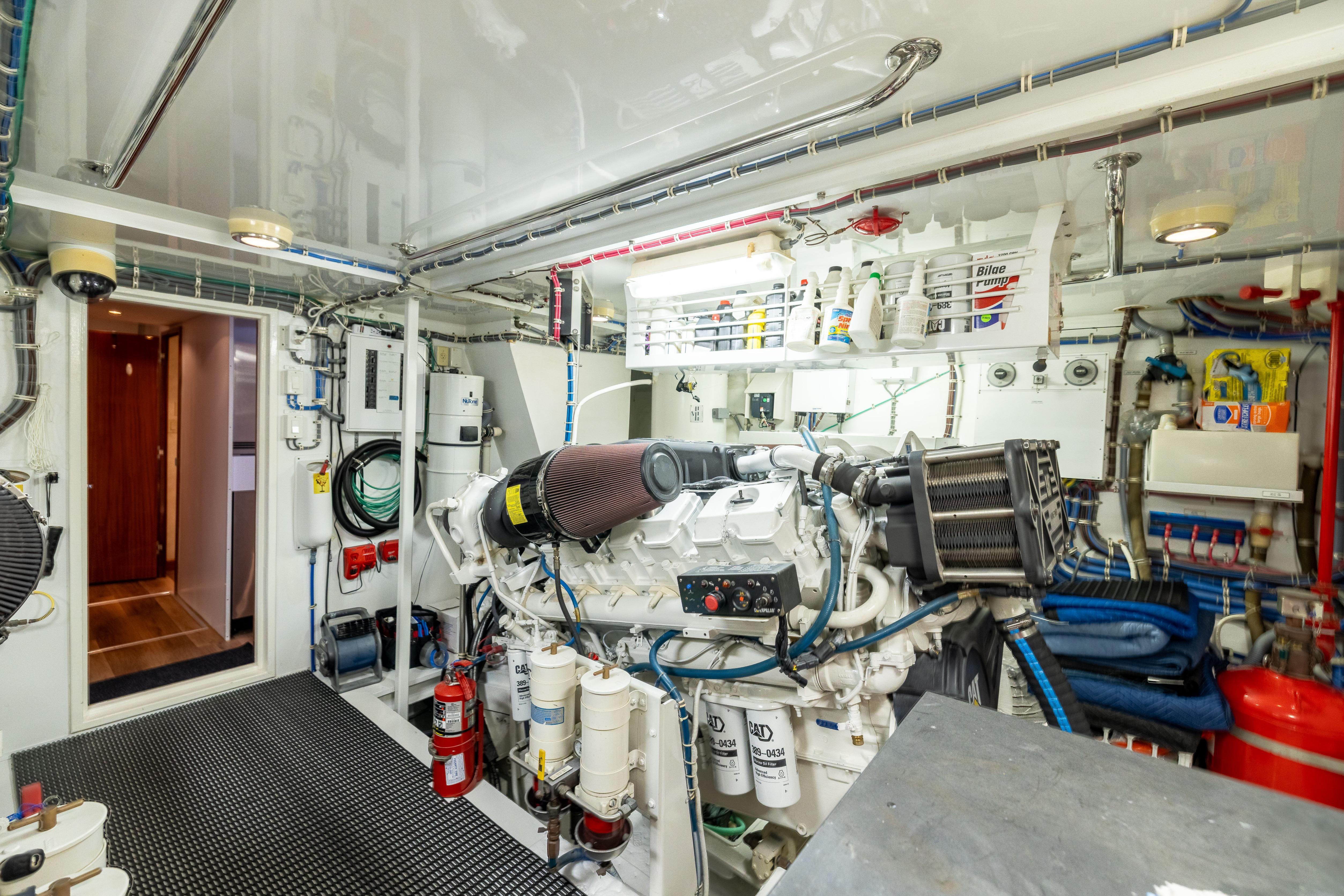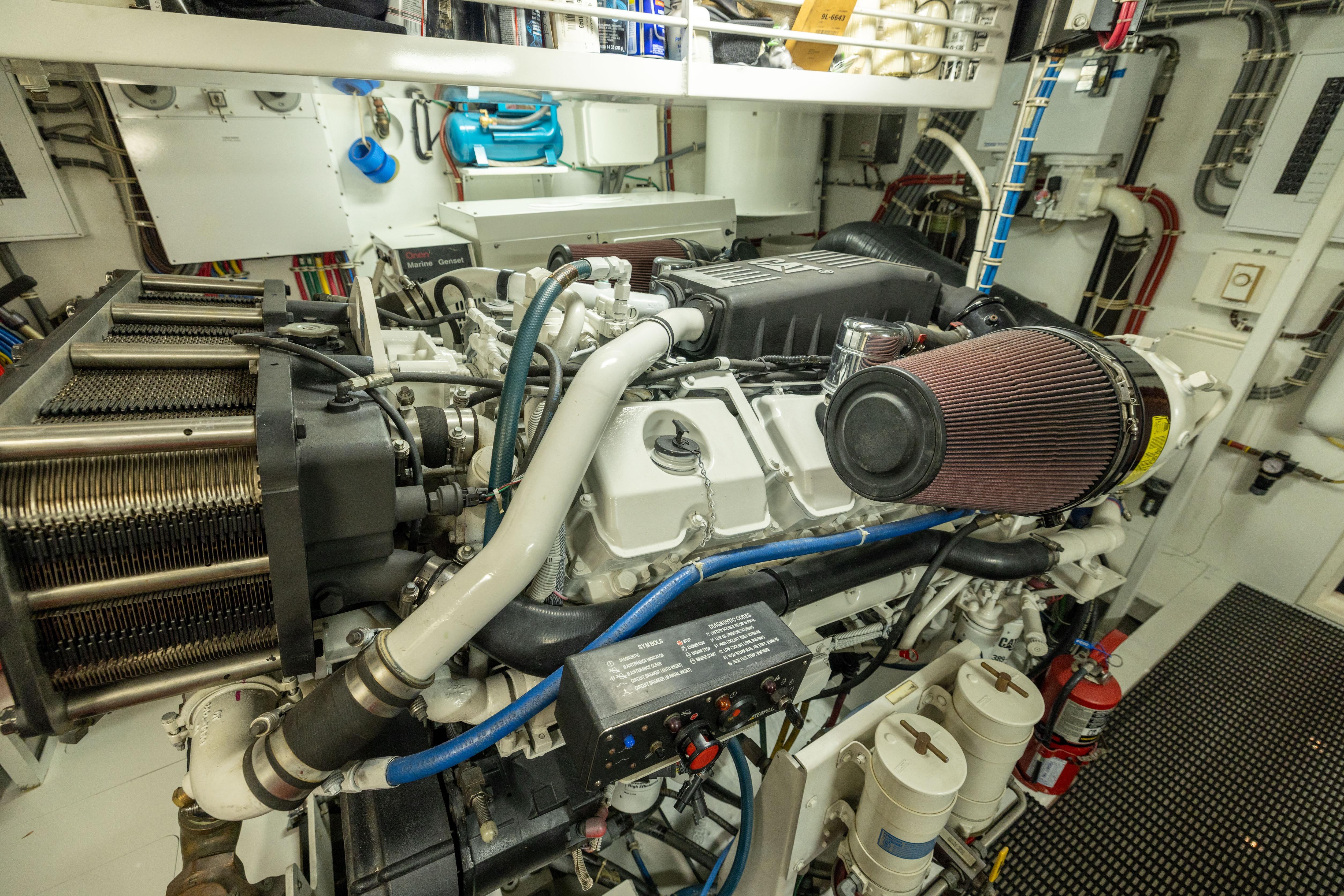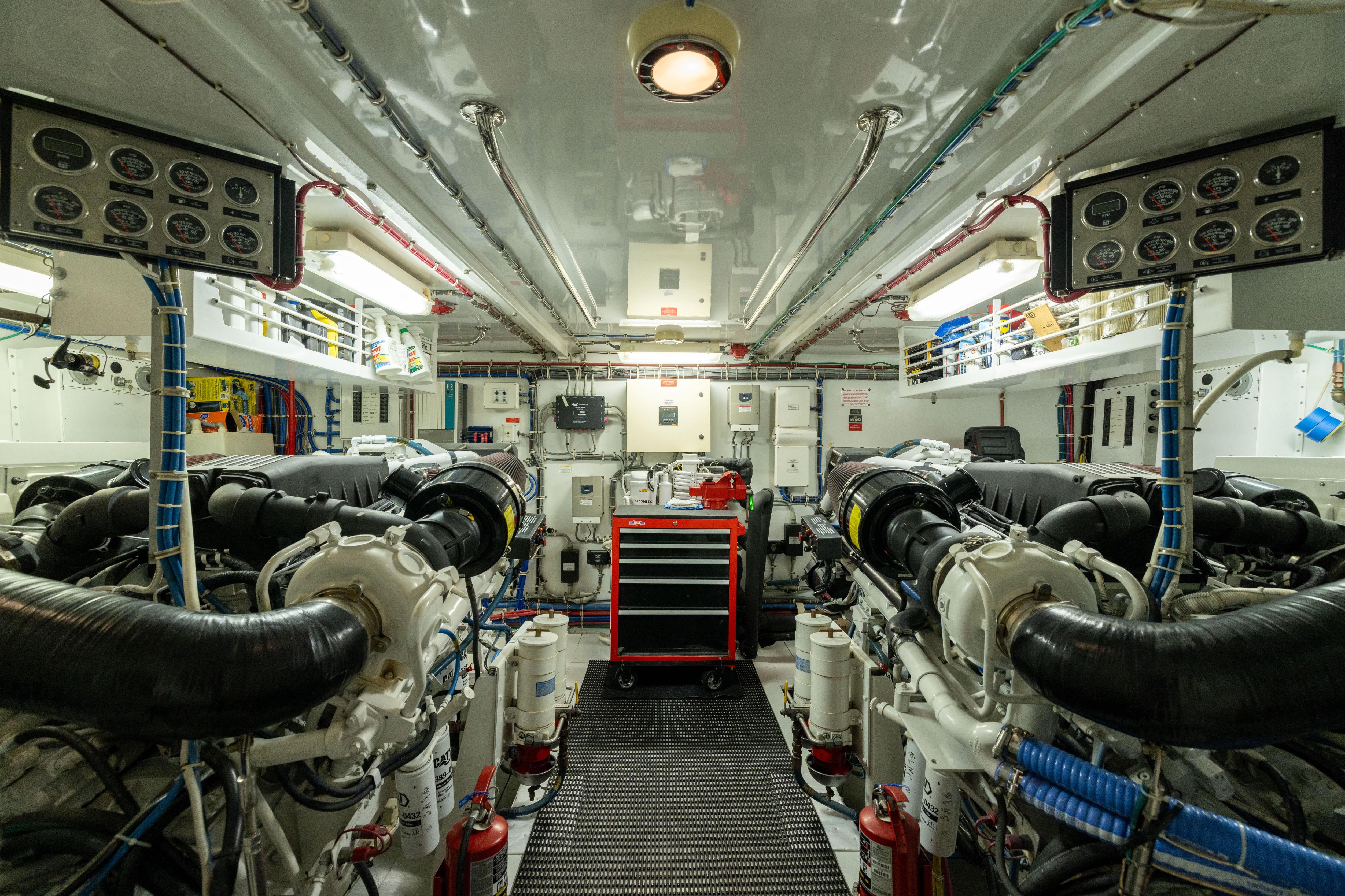- Twin diesel, freshwater cooled main engines with electrically controlled marine gears, neutral interlocks, exhaust silencers, engine hour meters, alternators, fuel filters and