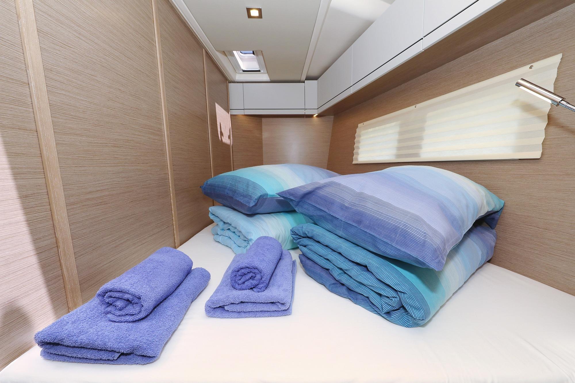 B3: 2 fwd cabins with double berth, storage space and separate head with shower - convertible by a removable bulkhead into a single cabin