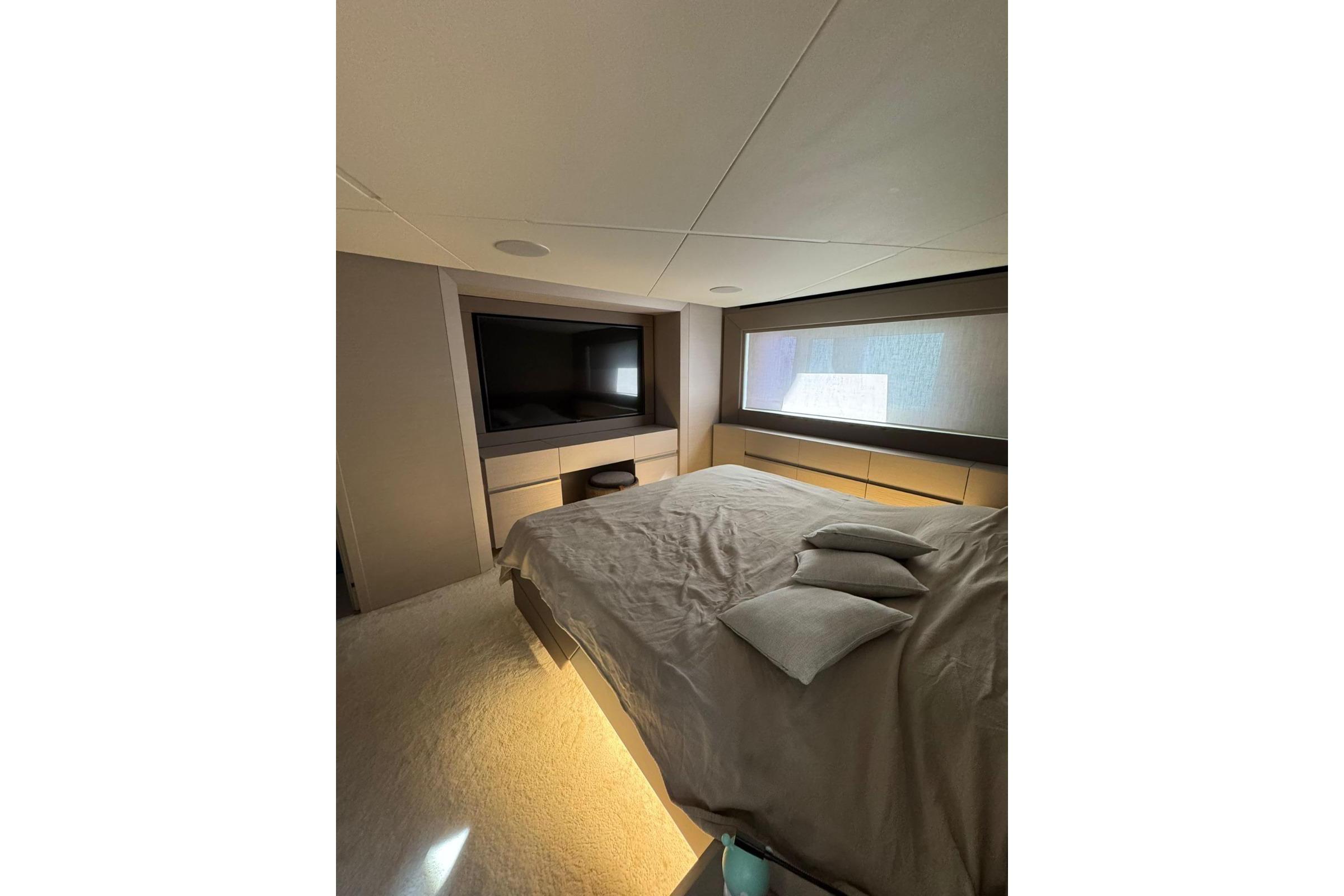 Gli interni offrono 3 cabine ospiti con 3 bagni, tra cui una spaziosa cabina armatoriale a tutto baglio, una VIP a prua e una cabina doppia, tutte caratterizzate da un design contemporaneo e materiali di alta qualità. Gli ambienti sono progettati per garantire comfort, luminosità e massima vivibilità a bordo.