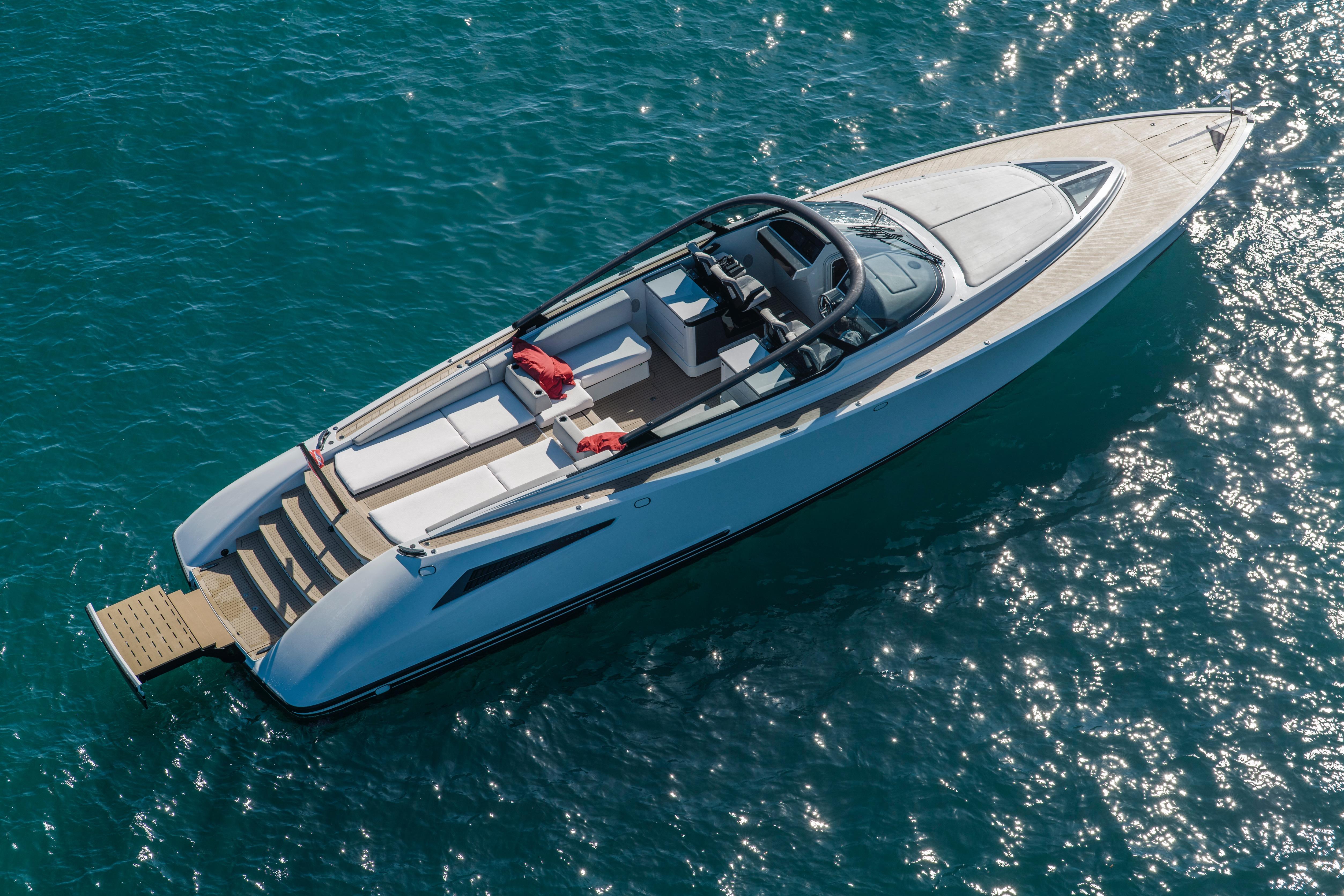 This Wayer 55 combines top-quality materials with innovative design. Perfect for discerning owners seeking elegance and performance, it features a unique layout and high-end furnishings, offering unparalleled comfort on every sea journey. CABALLITO DE MAR is equipped with all the essential options, a custom-made PORSCHE 911 color paint , a hydraulic retractable swim platform, automatic fender system and the Williams TurboJet 285 tender.