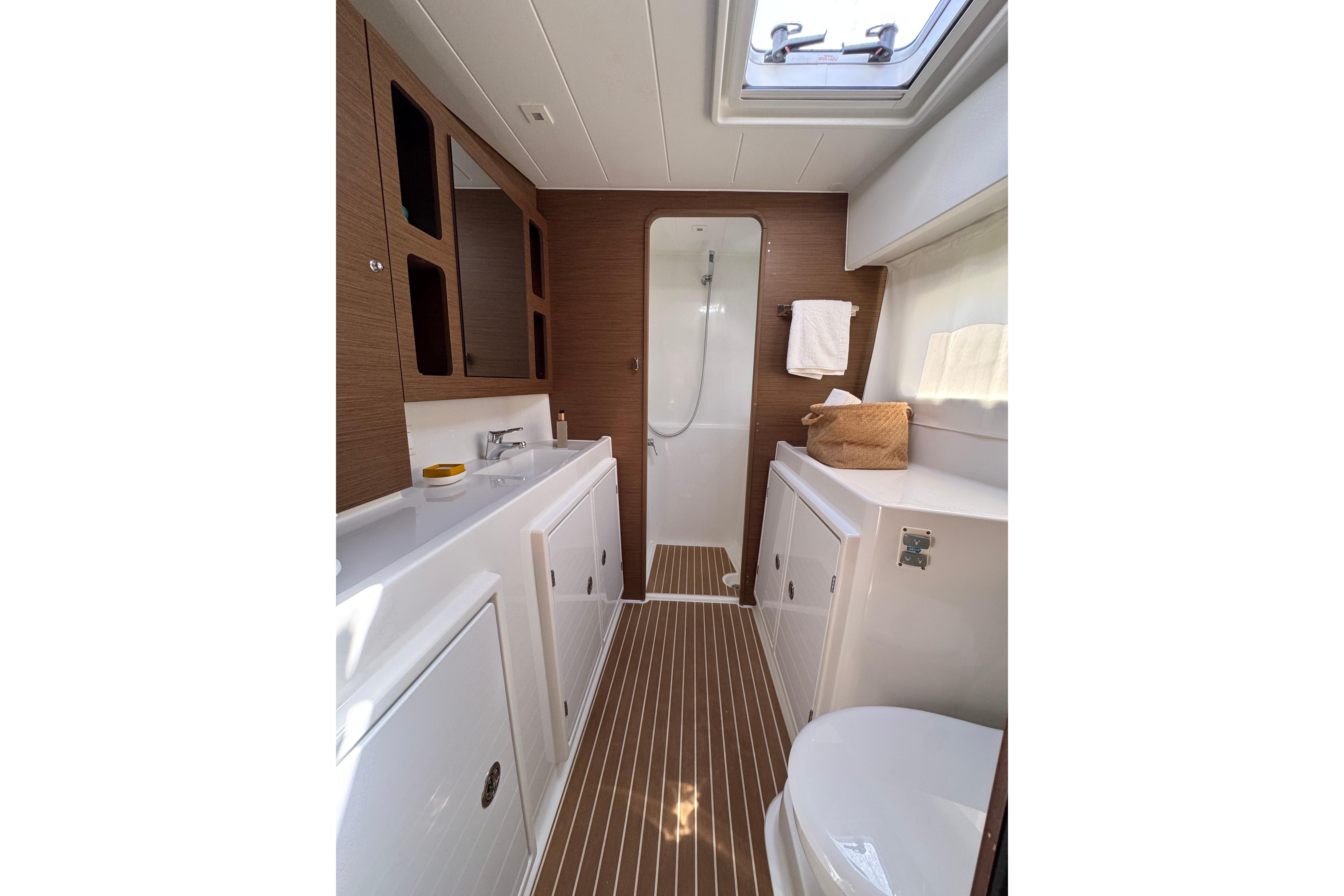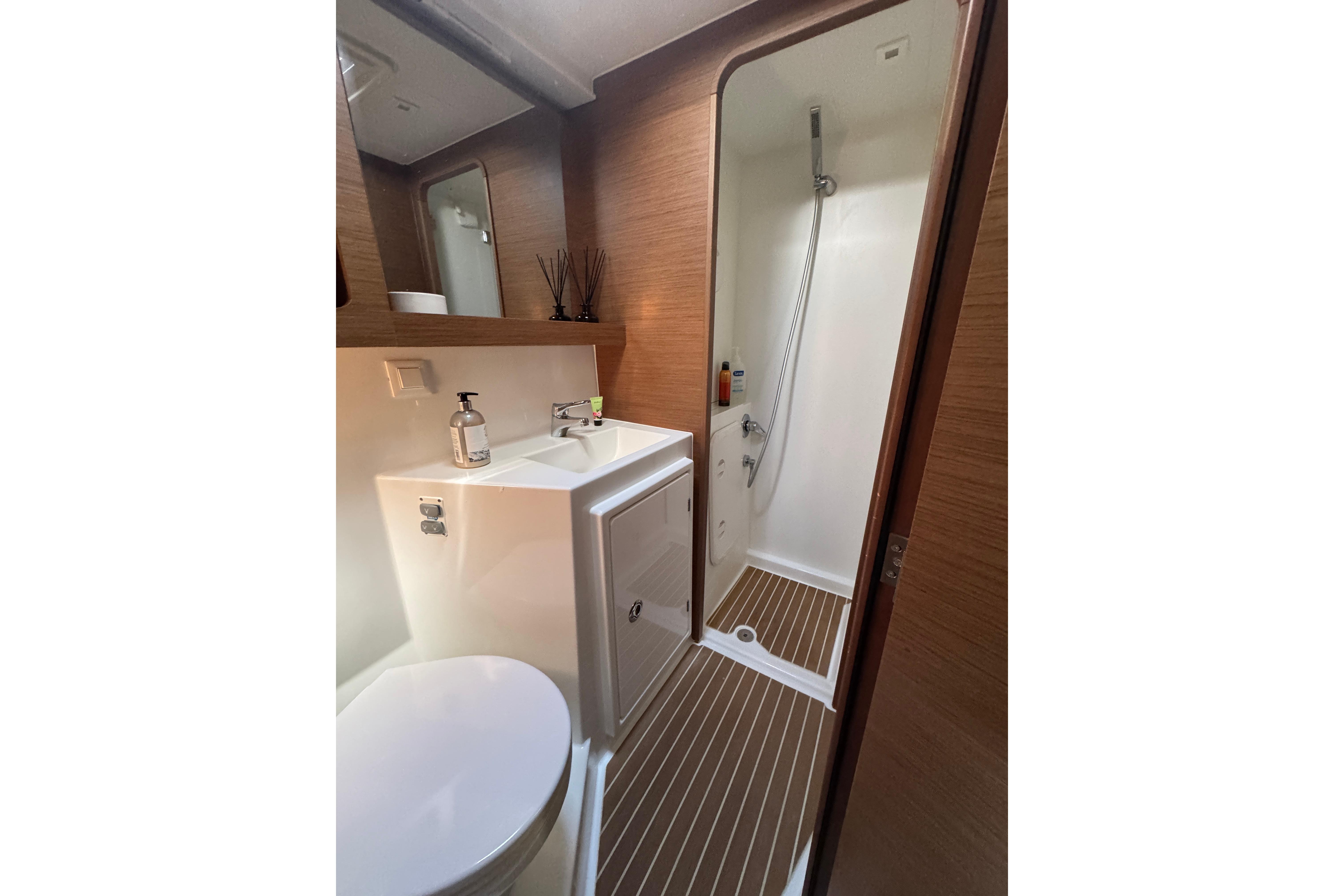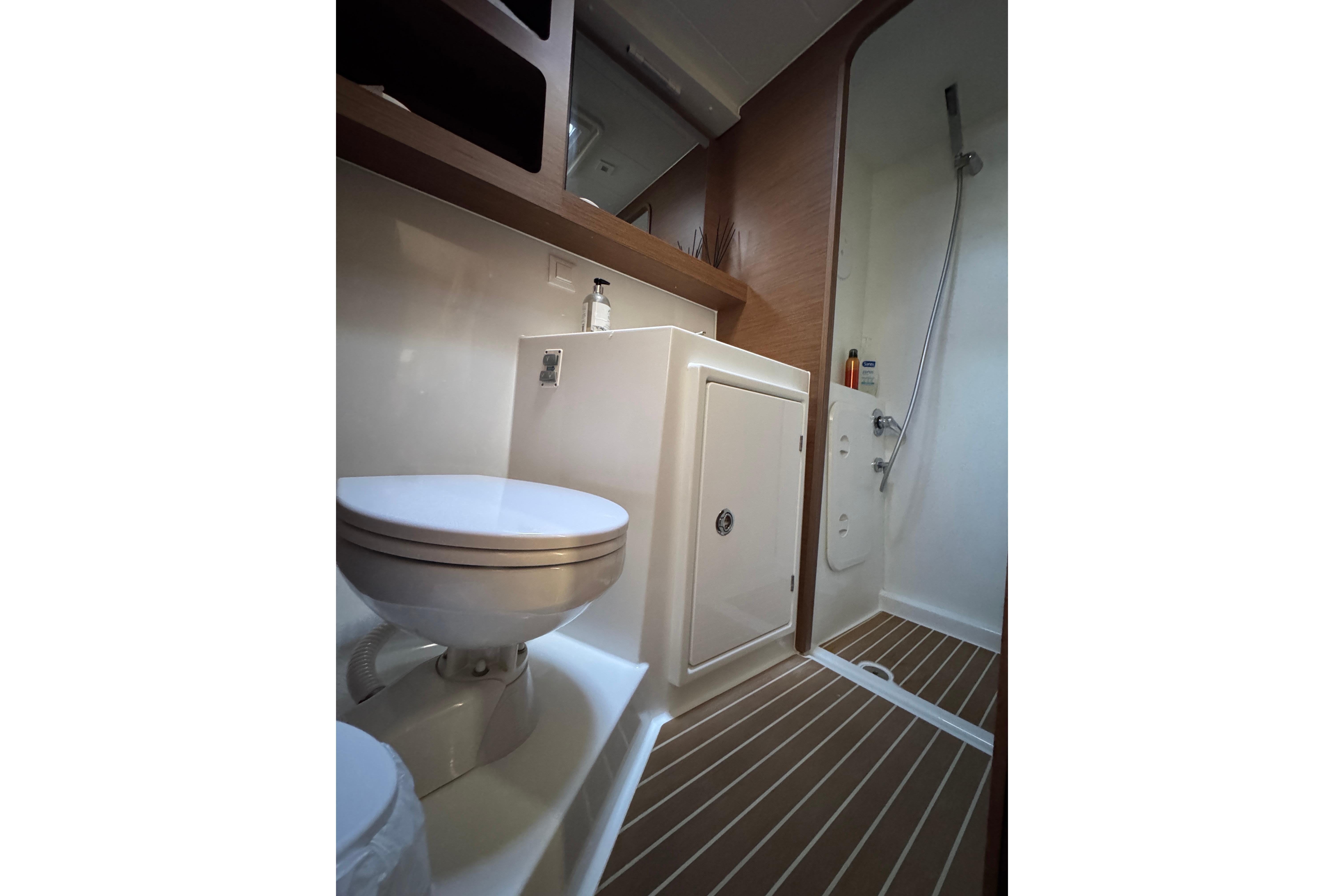- 3 electric toilets, switchable fresh/salt water