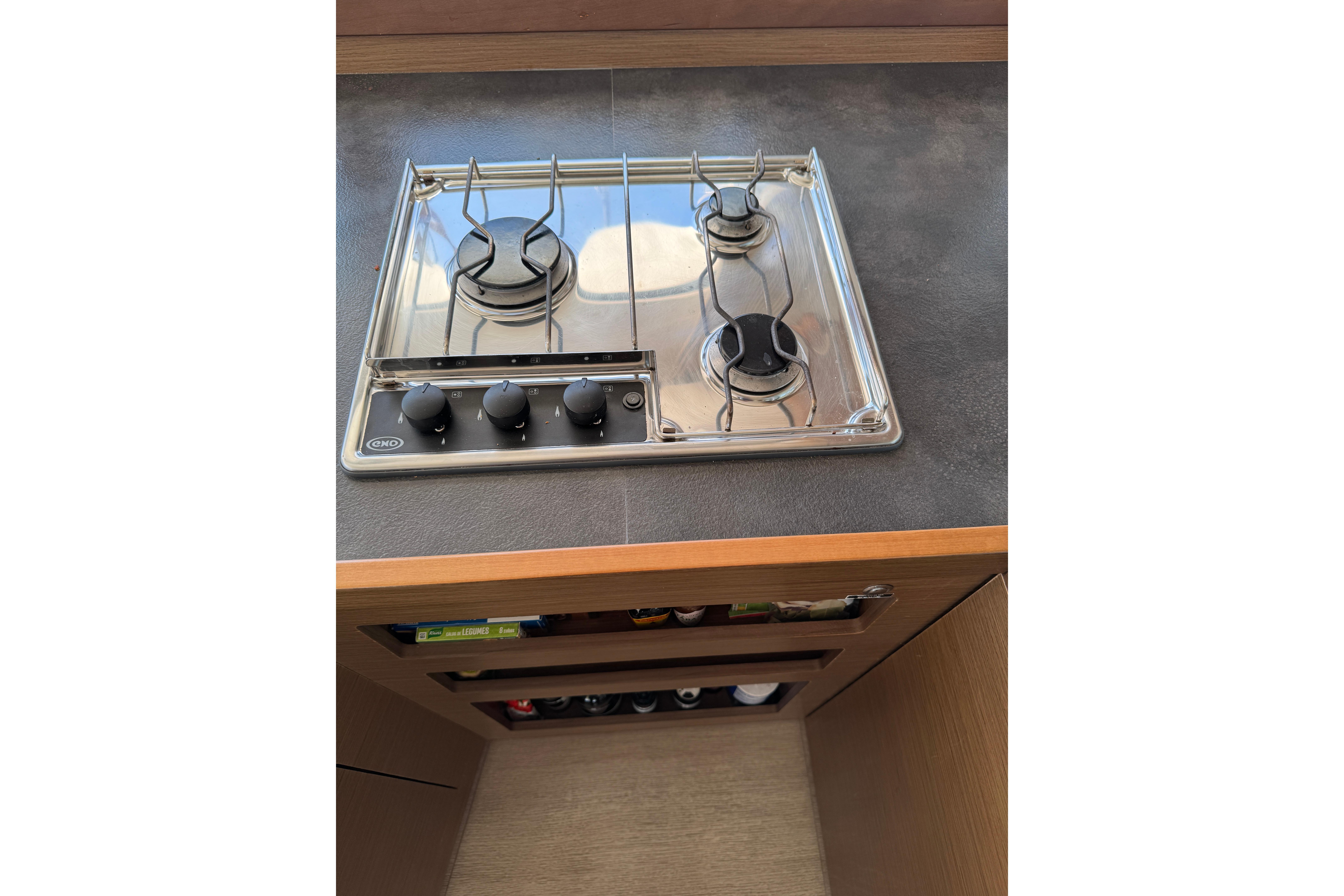 - Gas stove (3 burners + oven)