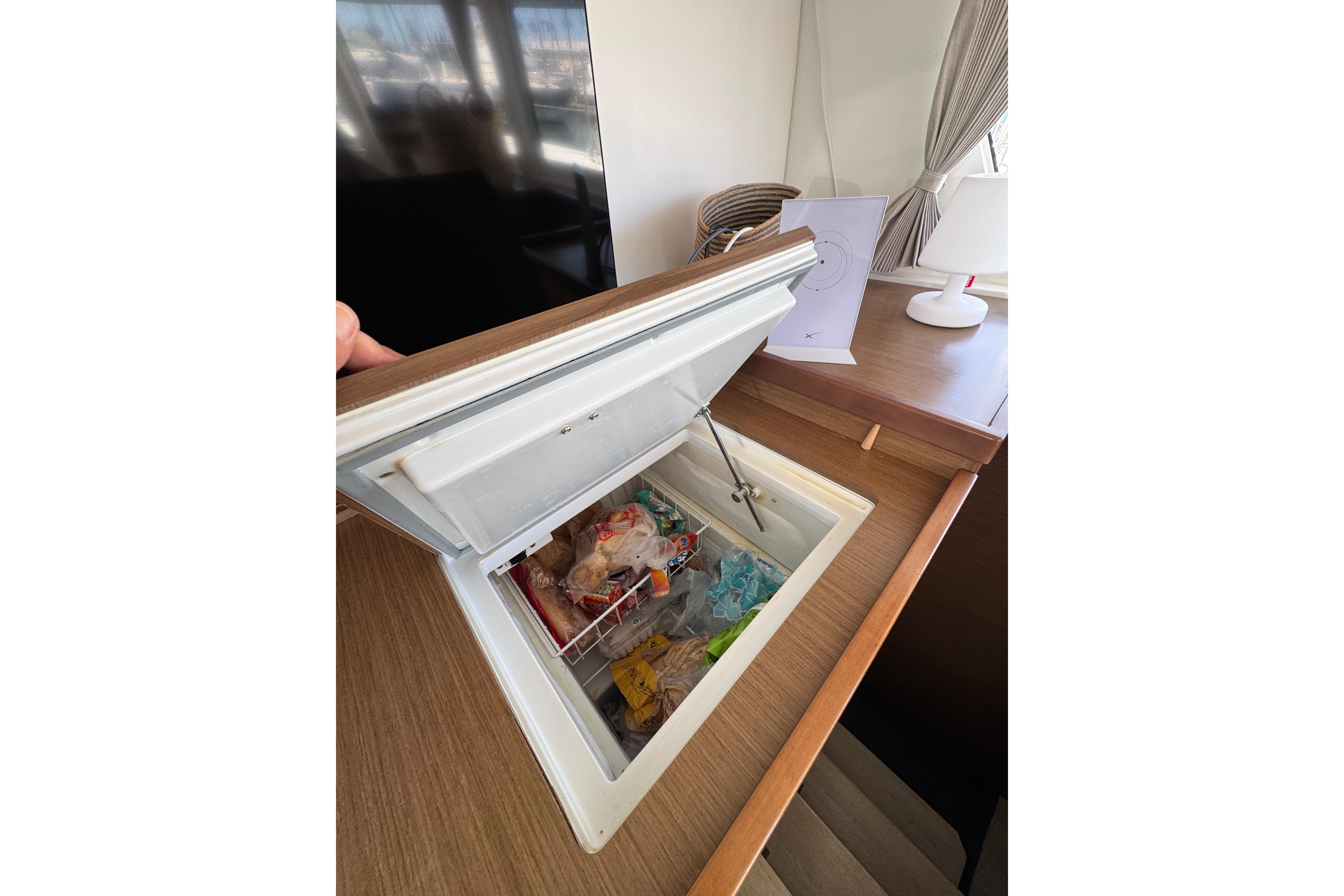 - Refrigeration: 2 × fridges (galley + cockpit), 1 × freezer (galley)
