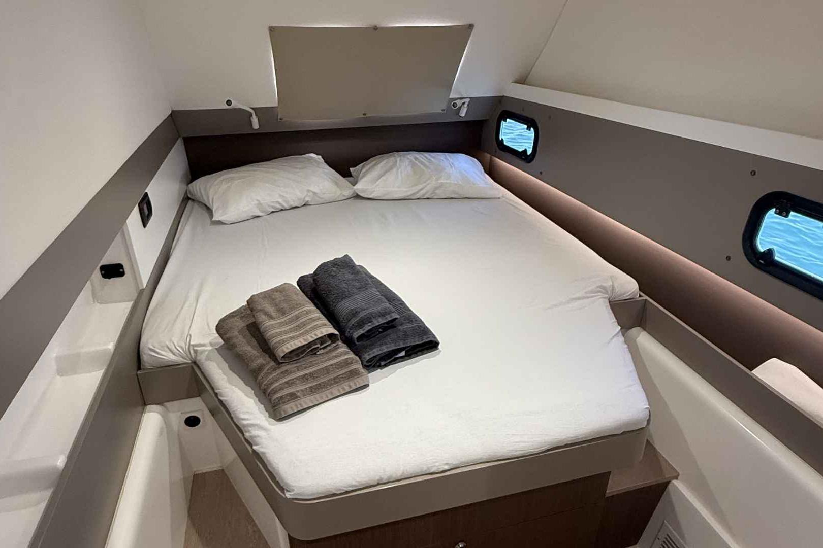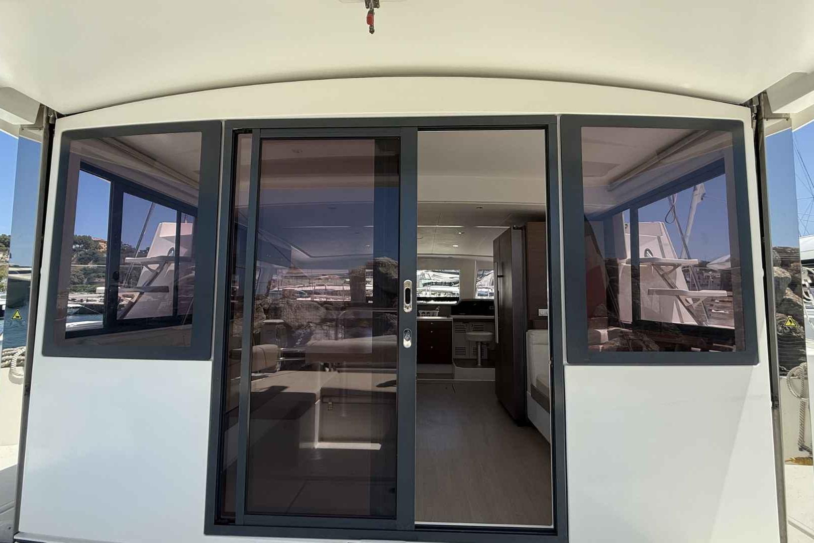 - Stainless-steel portholes with seats