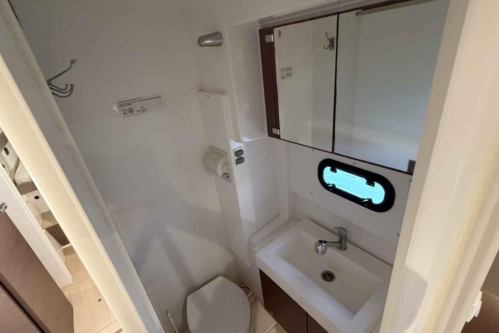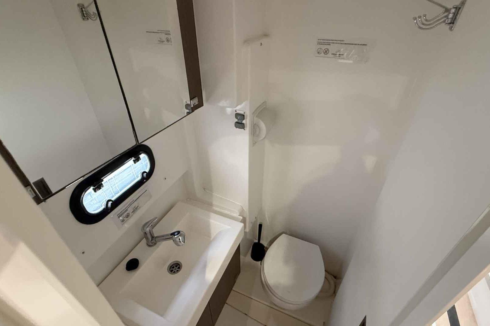 - 12V outlets (1 per cabin and at chart table)