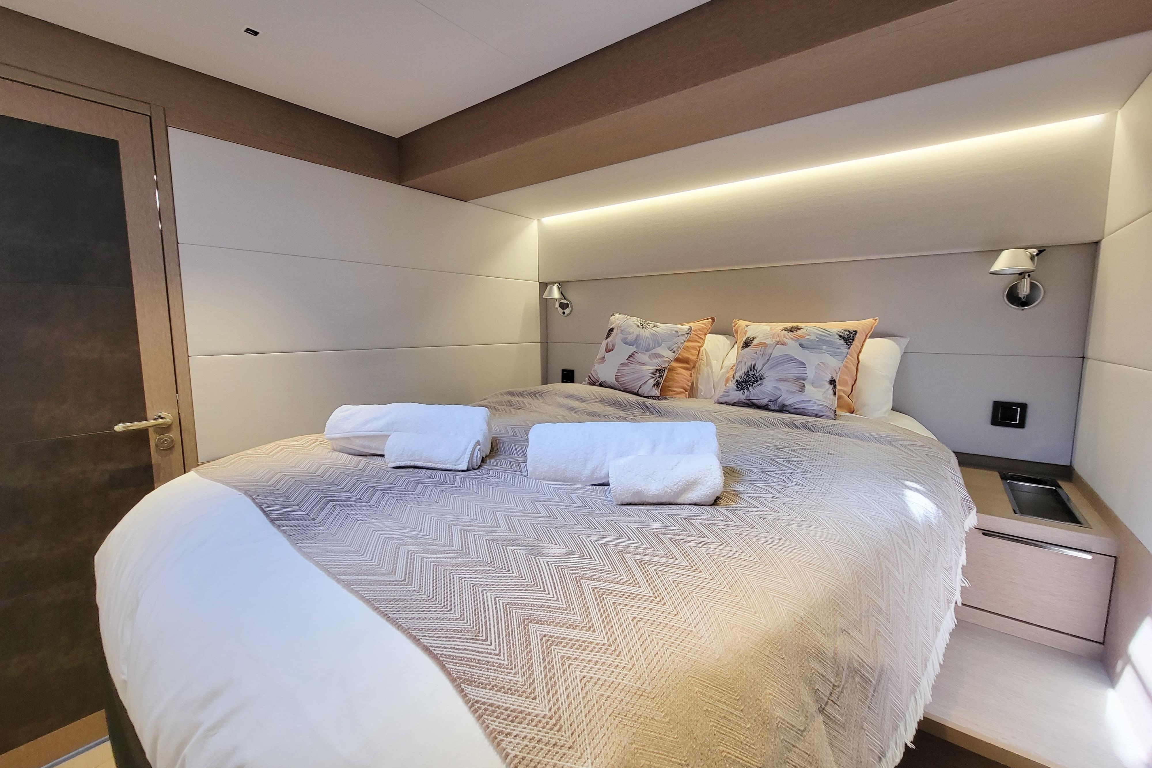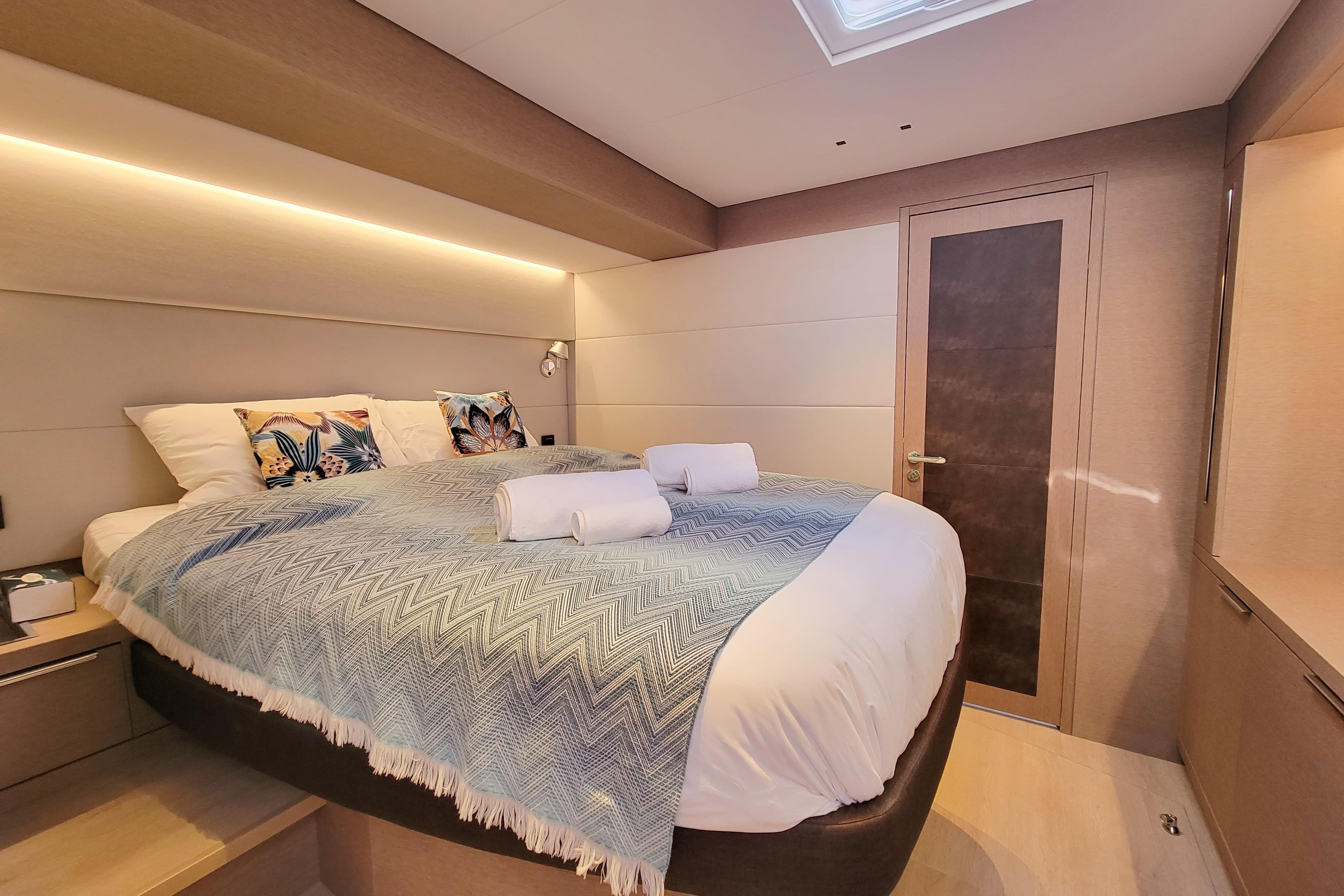 BLUE IRIS is the perfect catamaran for those seeking a spacious vessel, she accommodates up to 8 guests in 4 staterooms, including a Master Suite, and three additional staterooms.