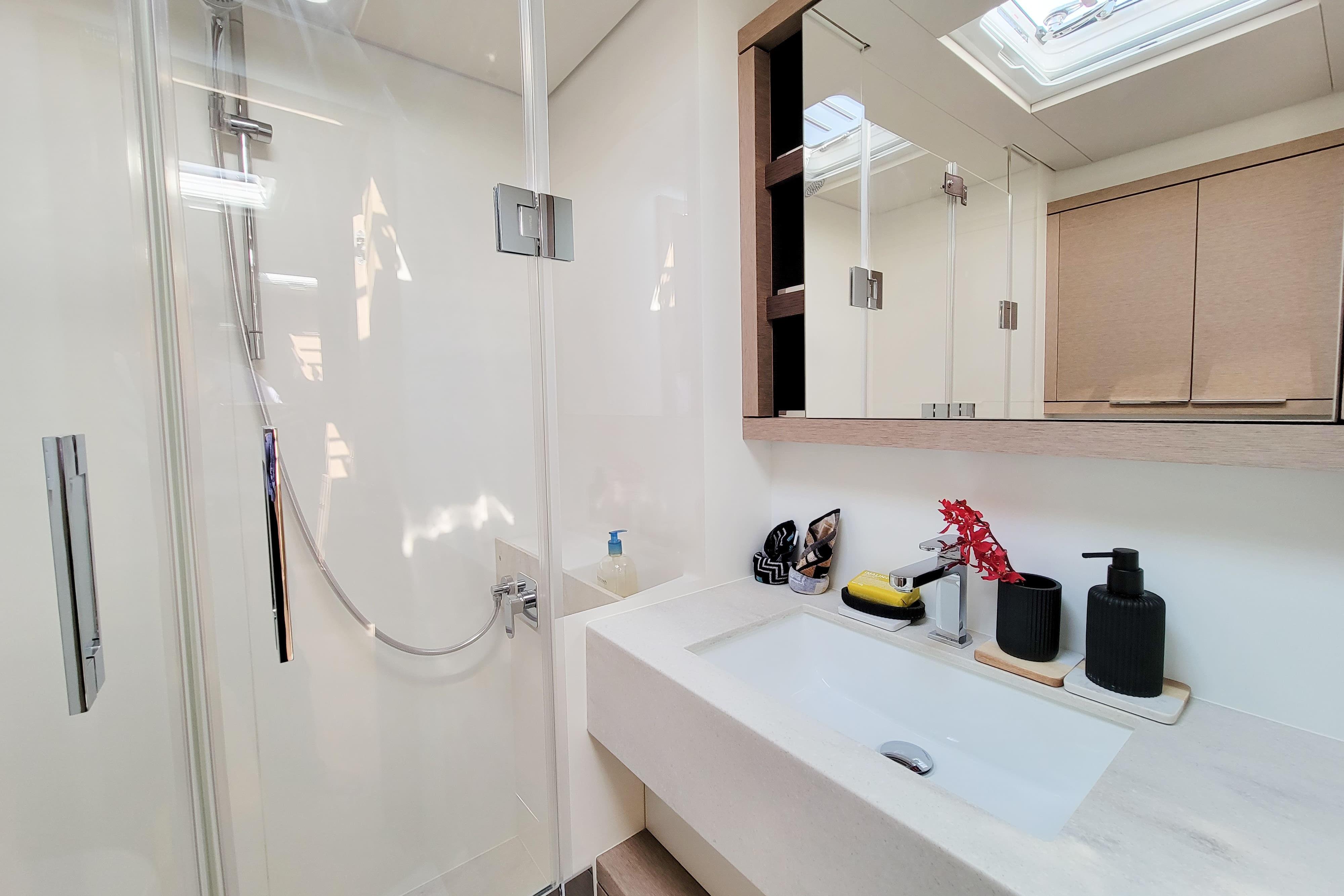 PORTSIDE: 2 BERTHS, SINK, SHOWER, TOILET