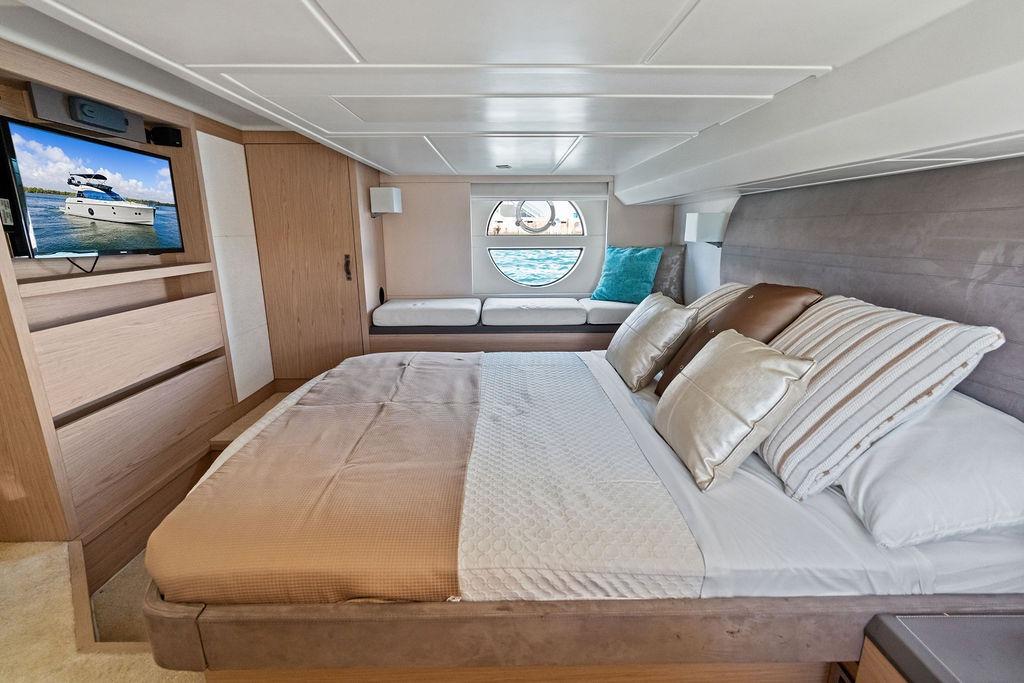 The full-beam master stateroom offers excellent space, natural light, and a comfortable private retreat.