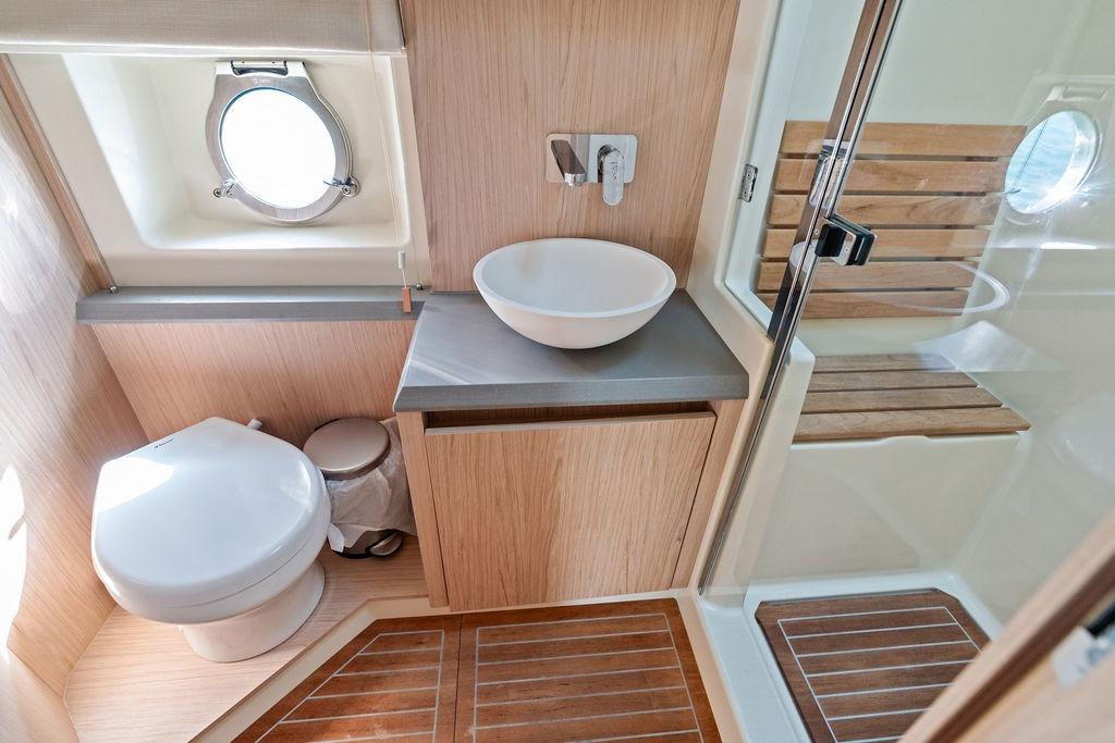 Forward guest accommodations include a spacious VIP with private head access.