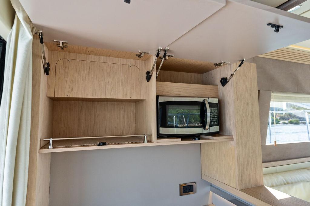 The forward galley is well positioned between the salon and lower accommodations, offering excellent functionality for extended cruising.