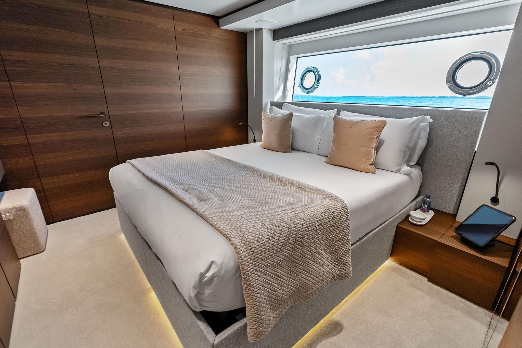 - Master cabin: bed frame in leather