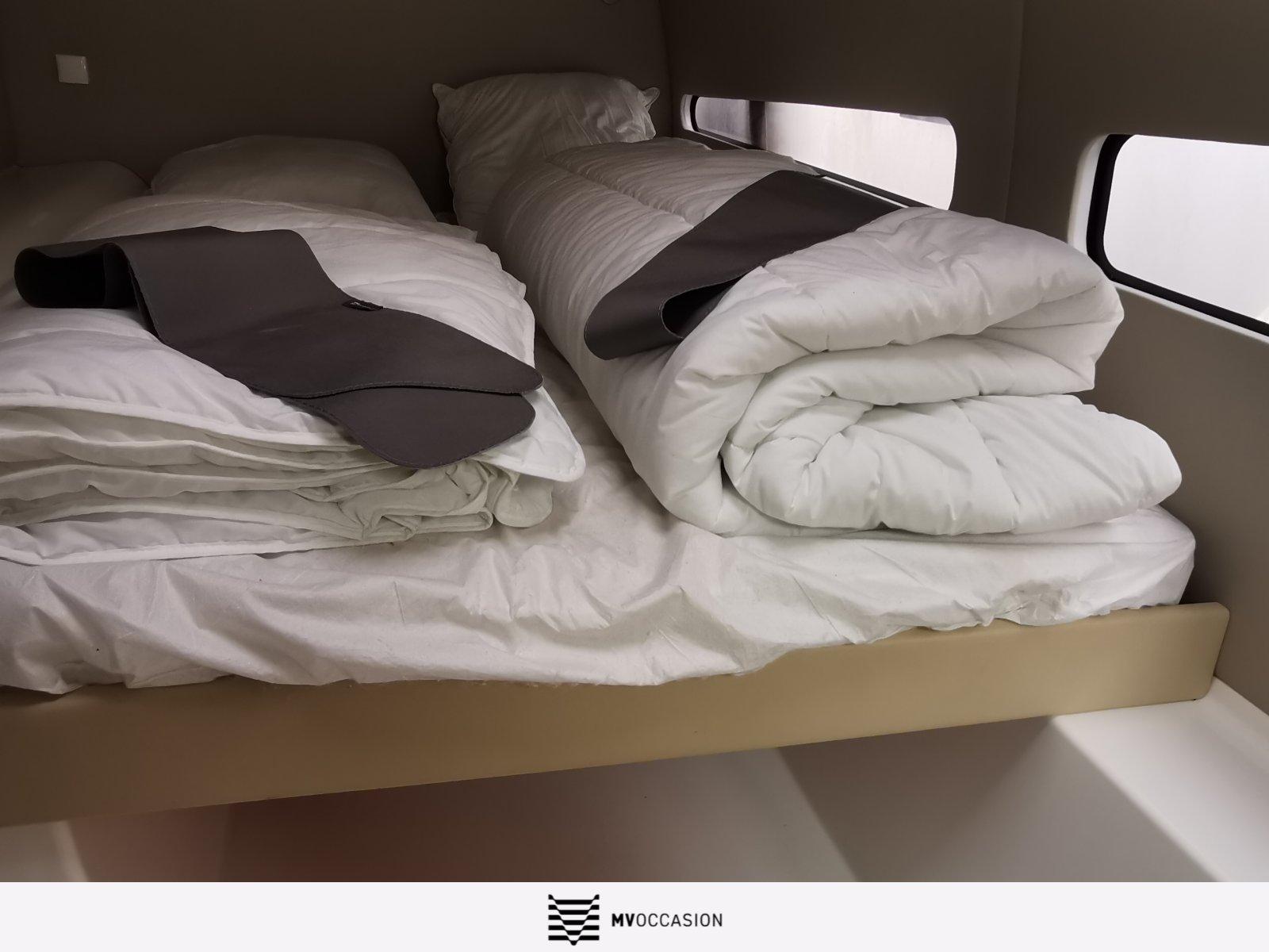 3 cabines / 6 couchages + 4 (pointes aménagées) / 3 salles d'eau
