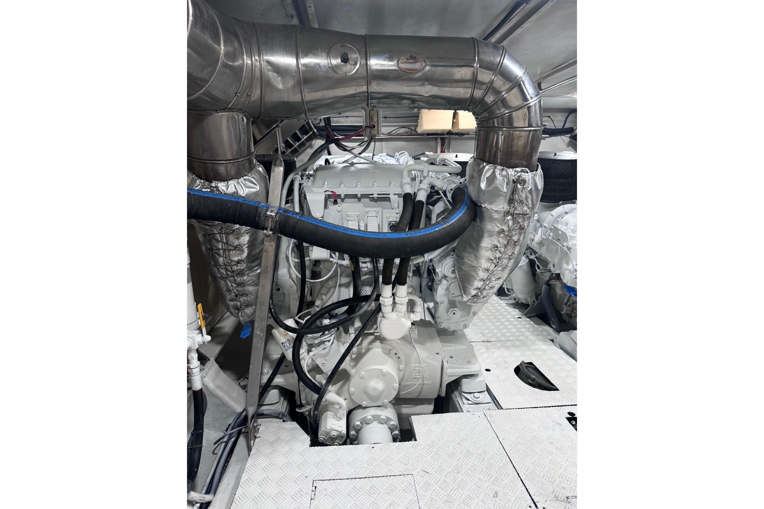 Recent improvements include new teak flooring throughout the interior and aft deck, new leather interior, updated upholstery and cushions, and expanded seating areas on both the flybridge and bow. The yacht also received fresh bottom paint and an out-of-water survey completed in September 2024.